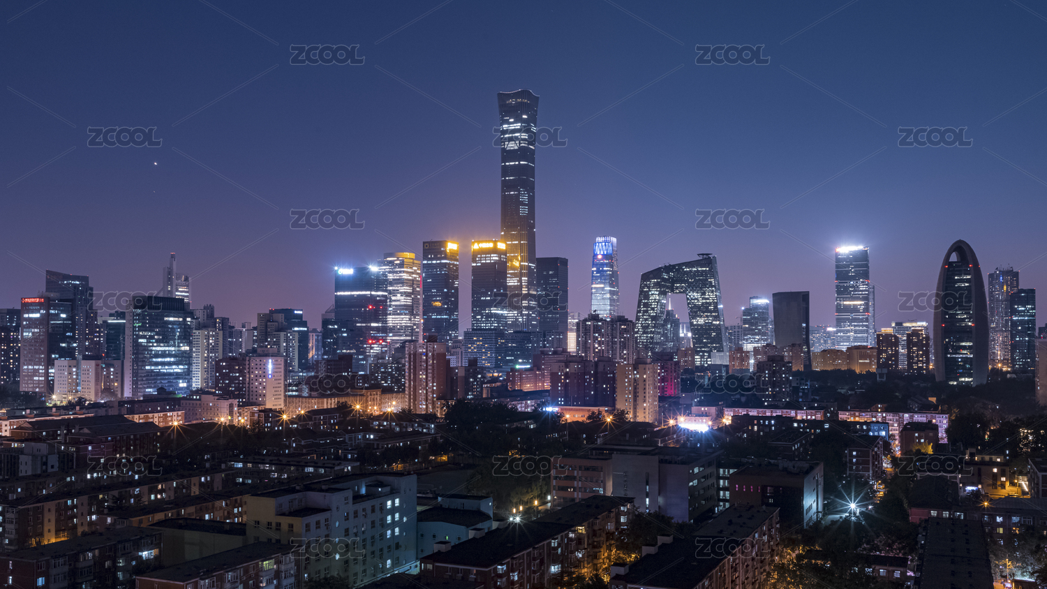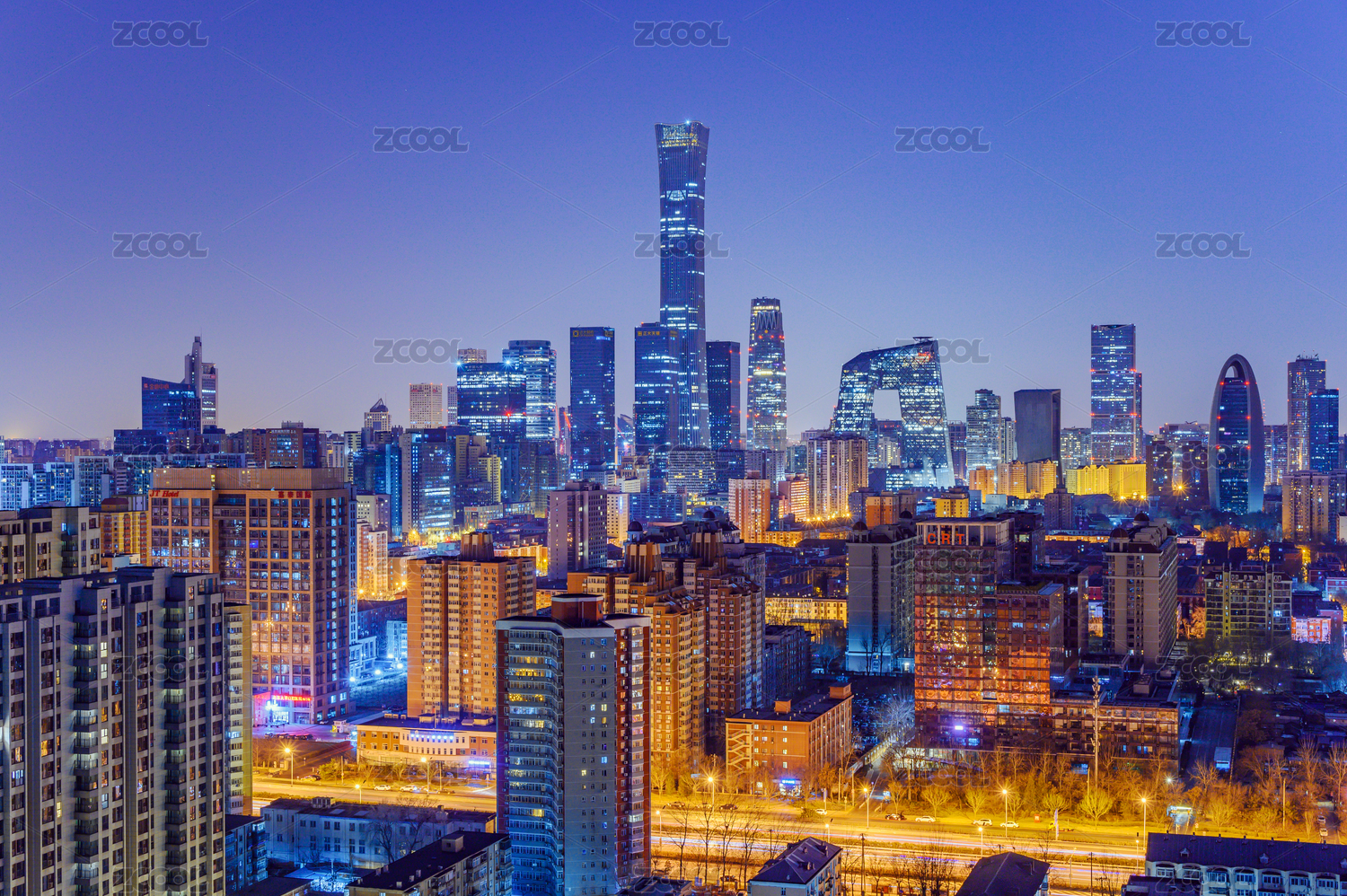 中国北京国贸中国尊中央电视台蓝调时刻夜景