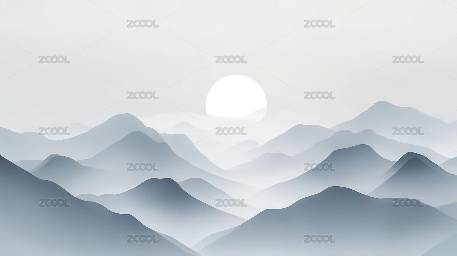 禅意,静谧,山水画,山脉,AIGC202407,日出,极简,云雾,简约,抽象