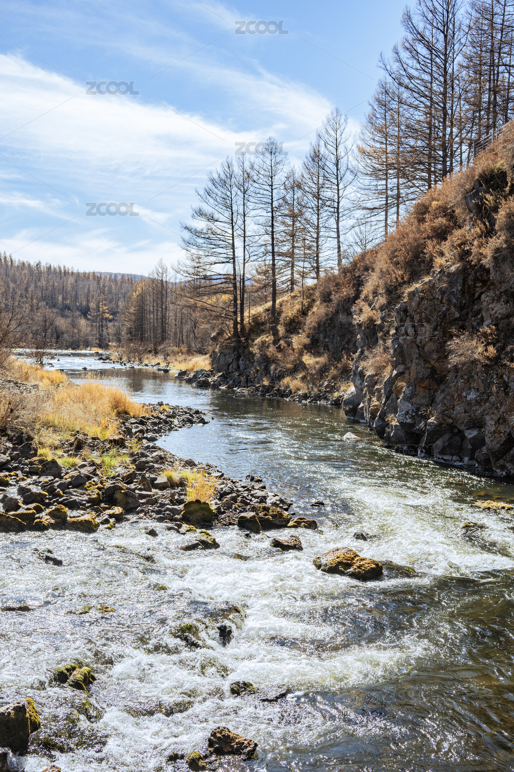 中国内蒙古阿尔山森林国家公园三潭峡秋景