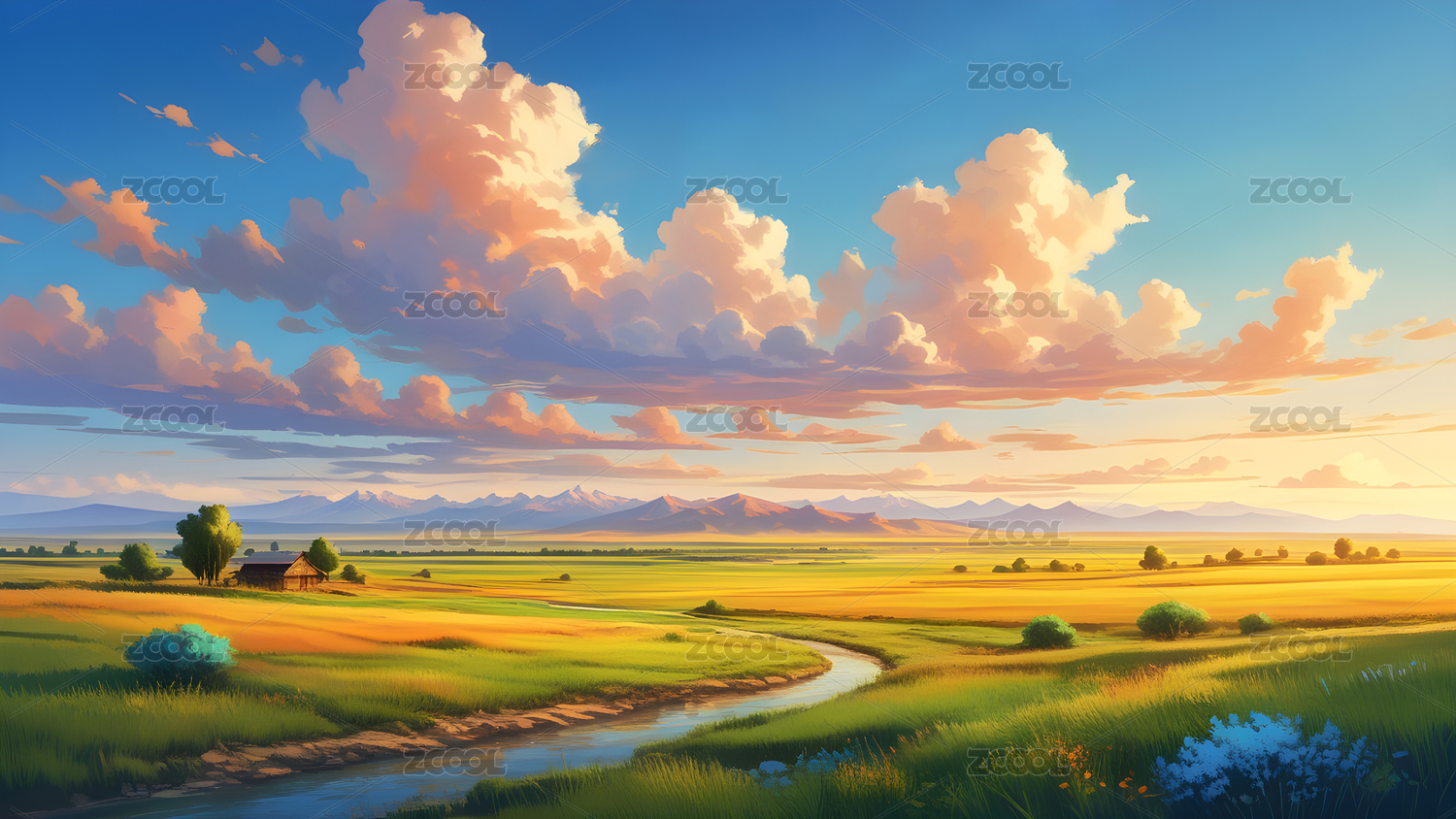 晴天,蓝天,白云,云朵,天空,天,云,草原,平原,野外