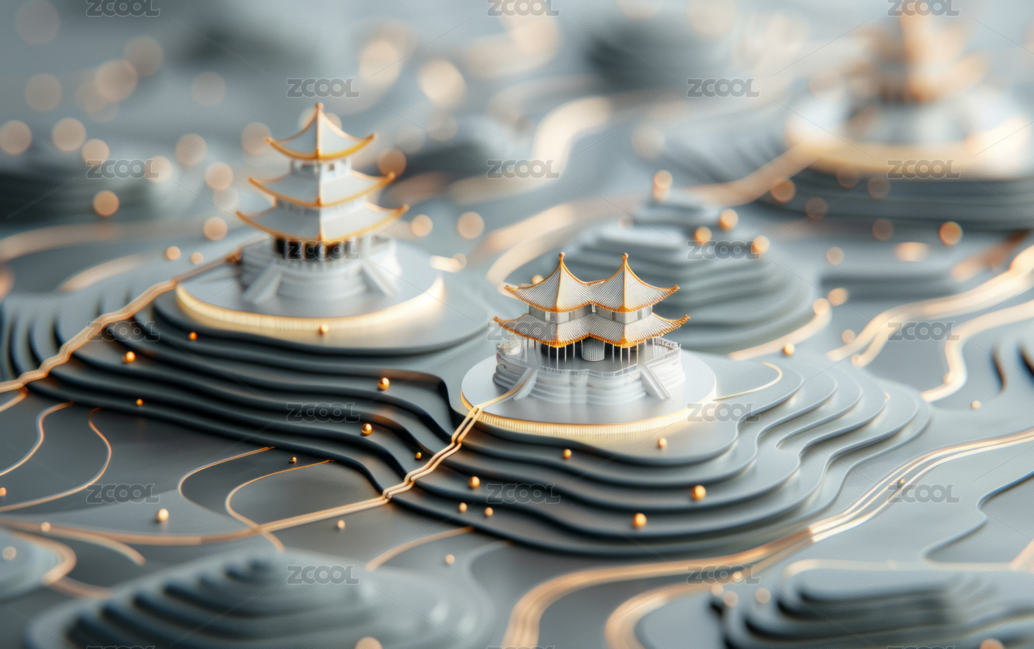 梦幻中国风古典霓虹的塔赛博建筑3D场景