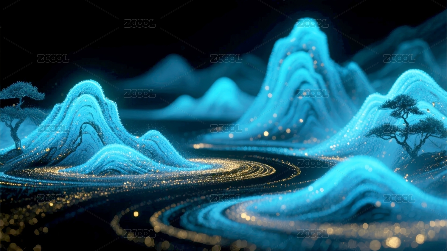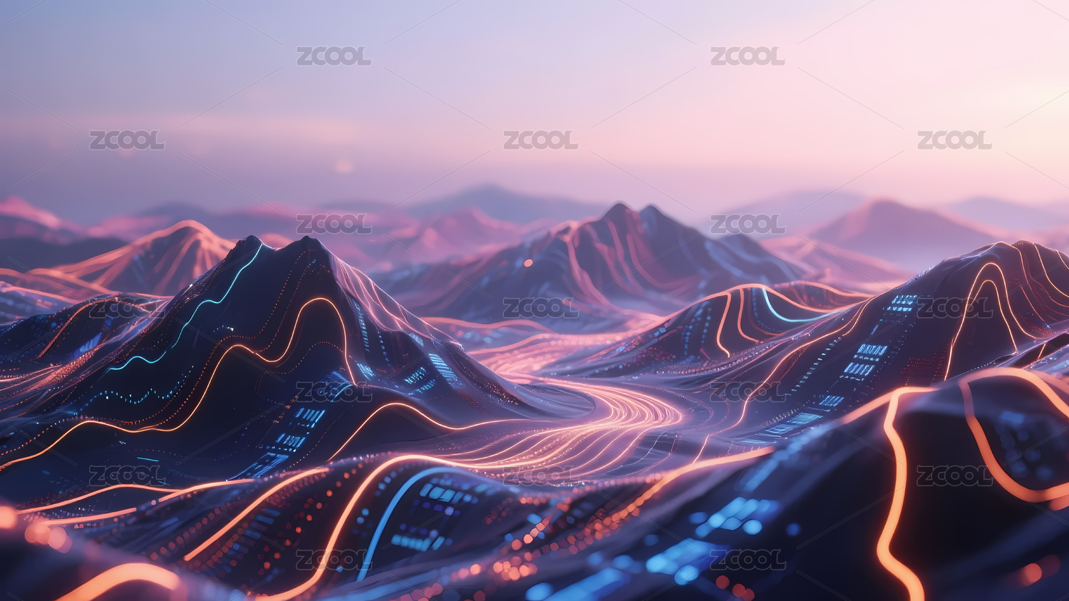 赛博朋克,荧光色,科技,科幻,金属,华丽,梦幻,起伏,波浪,全息