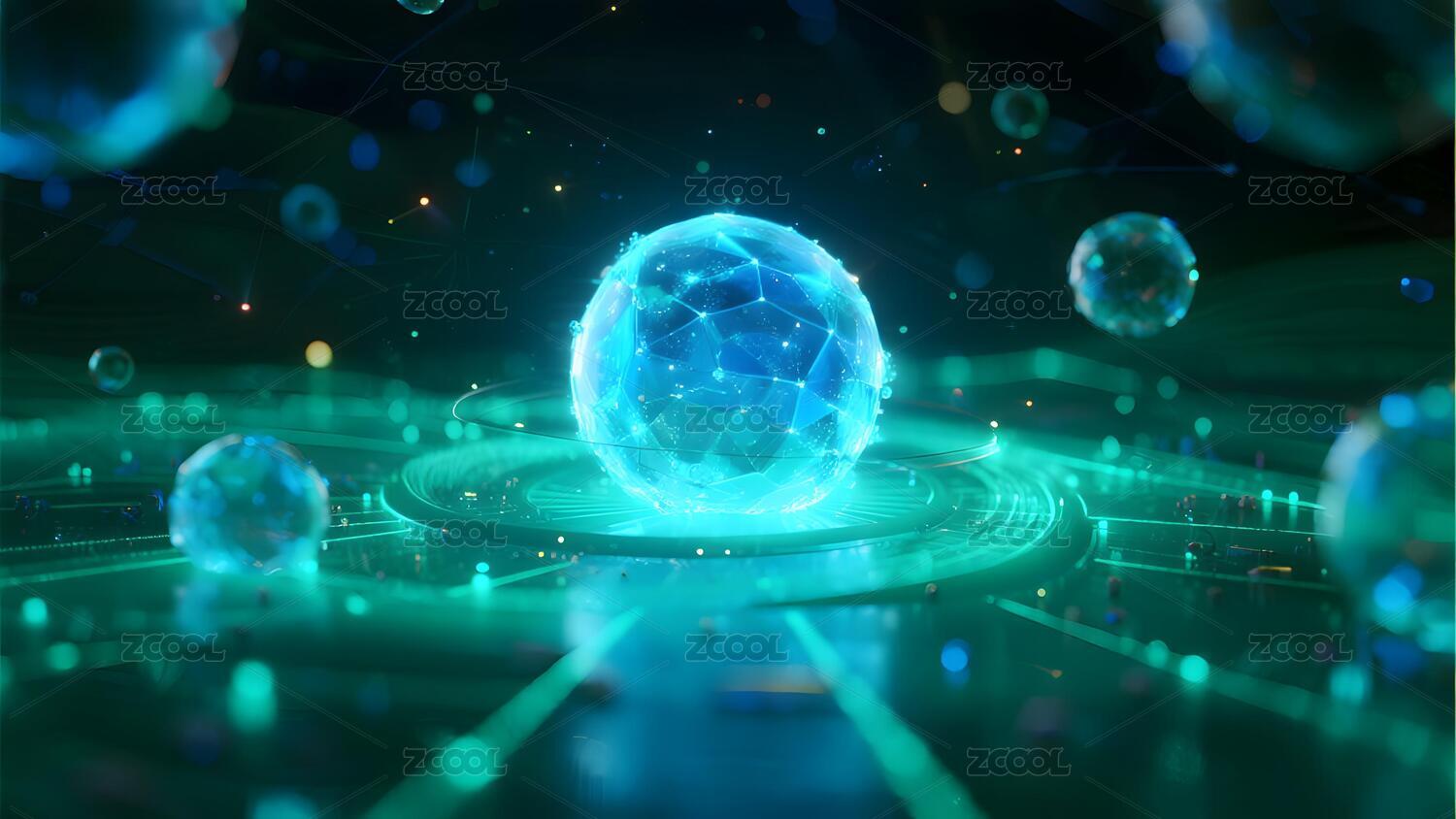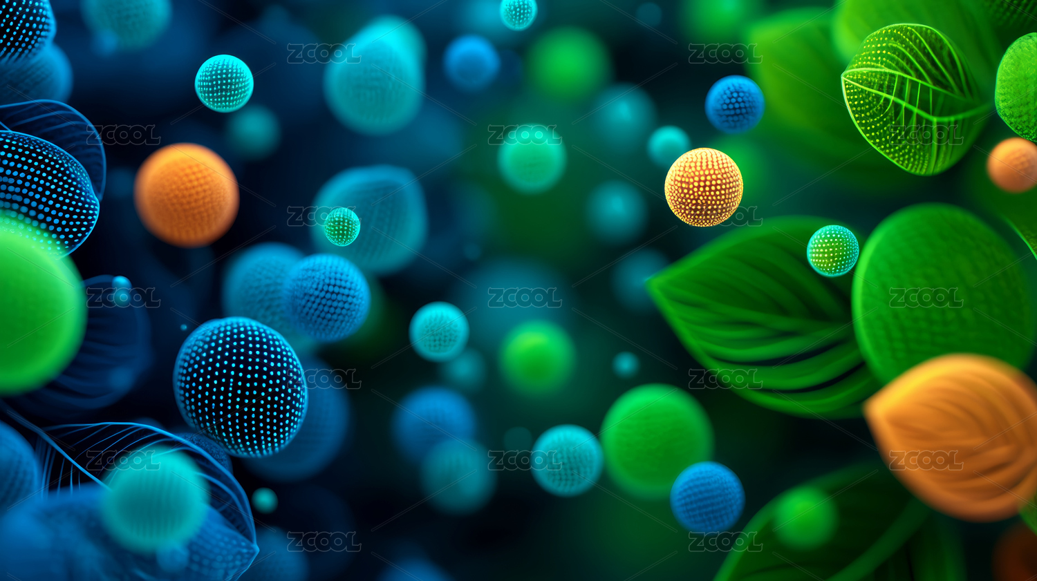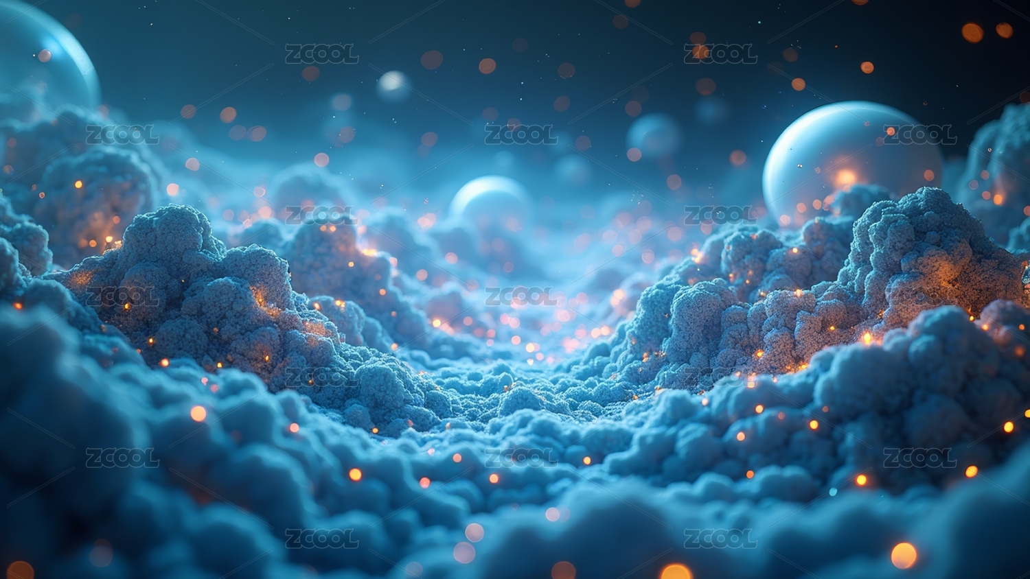夜晚,晴朗,绿色,植物,装饰,景观,3D,插画,晚上,星空