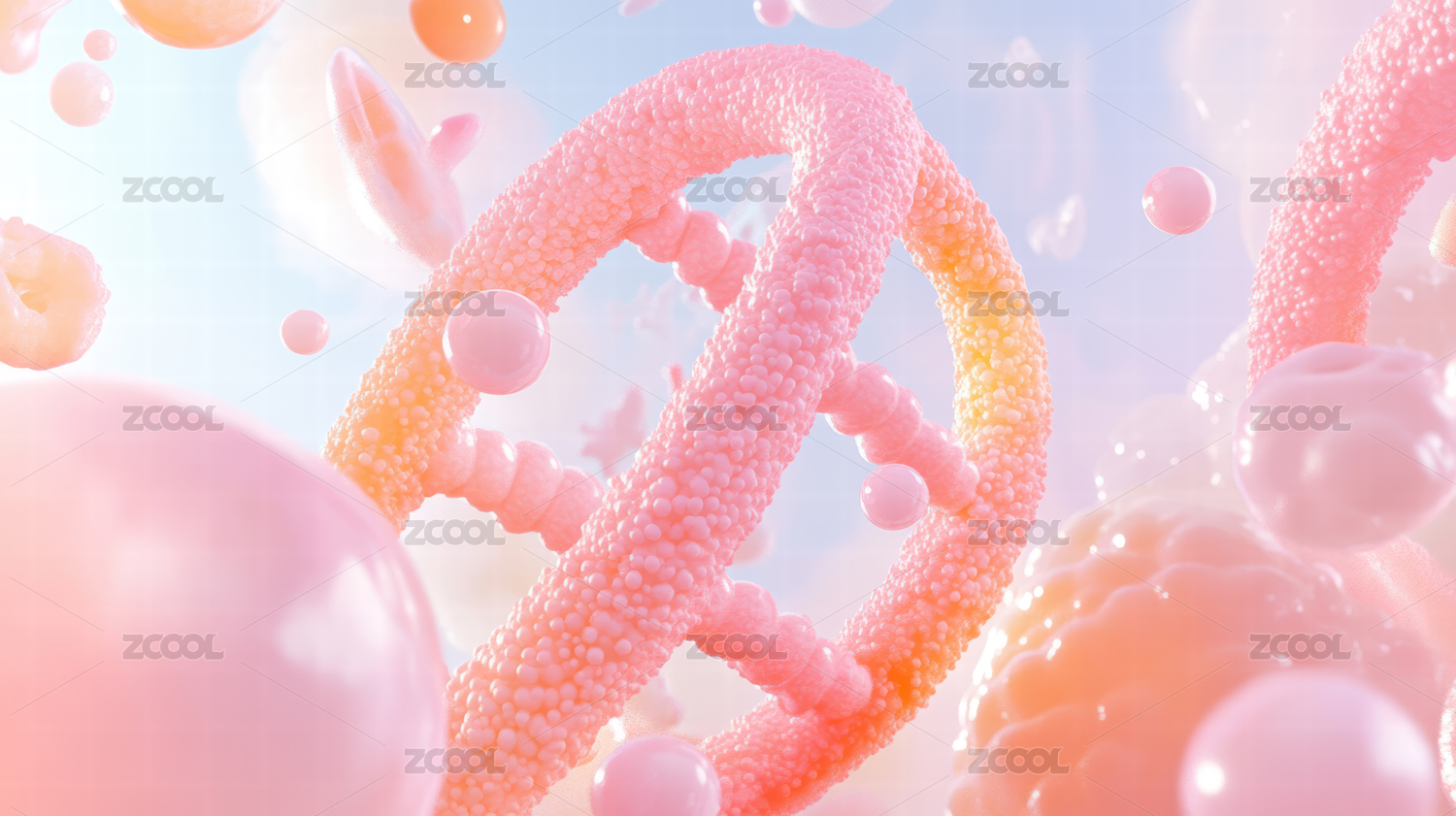 糖果色DNA螺旋生物细胞唯美梦幻粉色科技