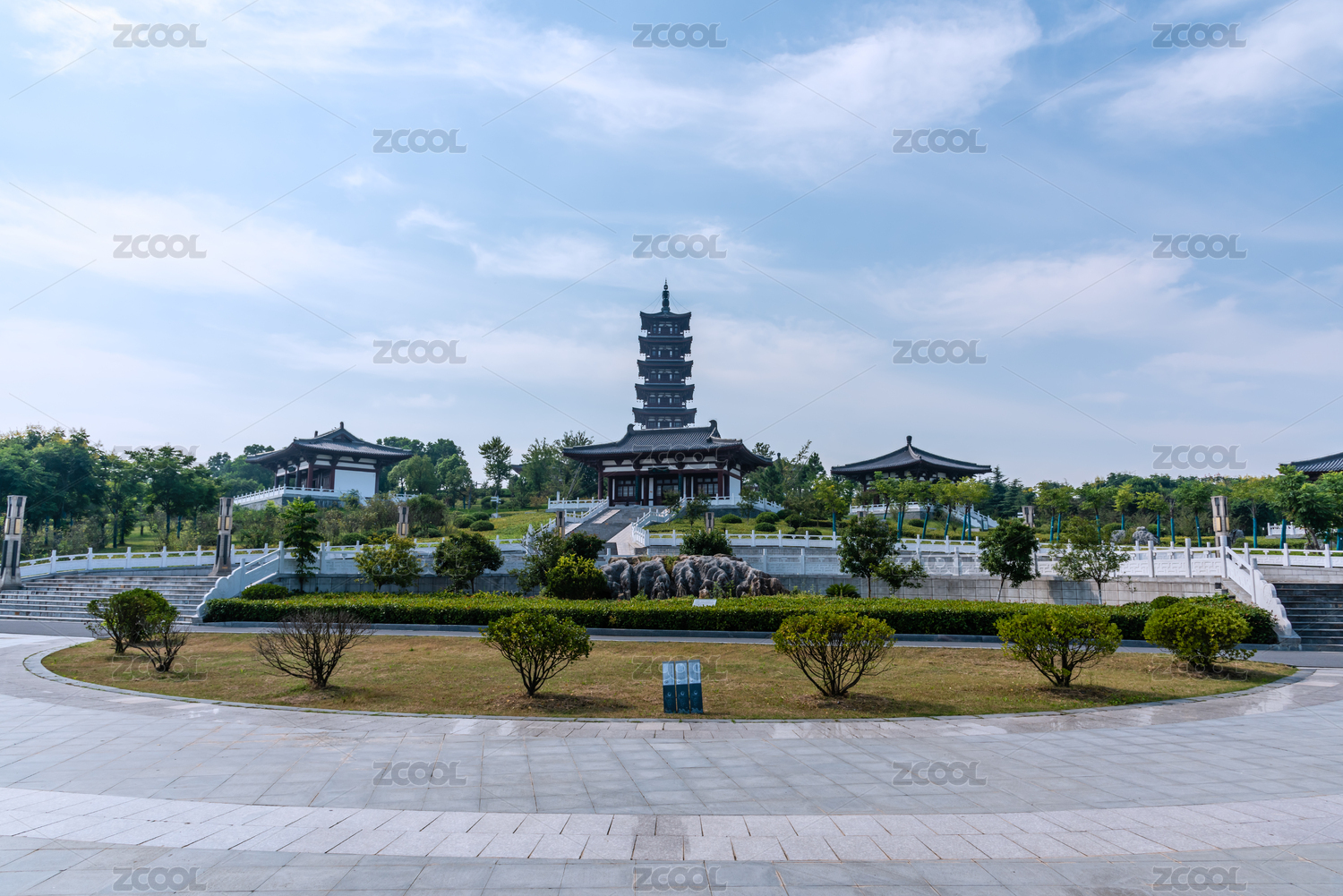 中国江苏苏州张家港寺庙东渡苑内部建筑特写