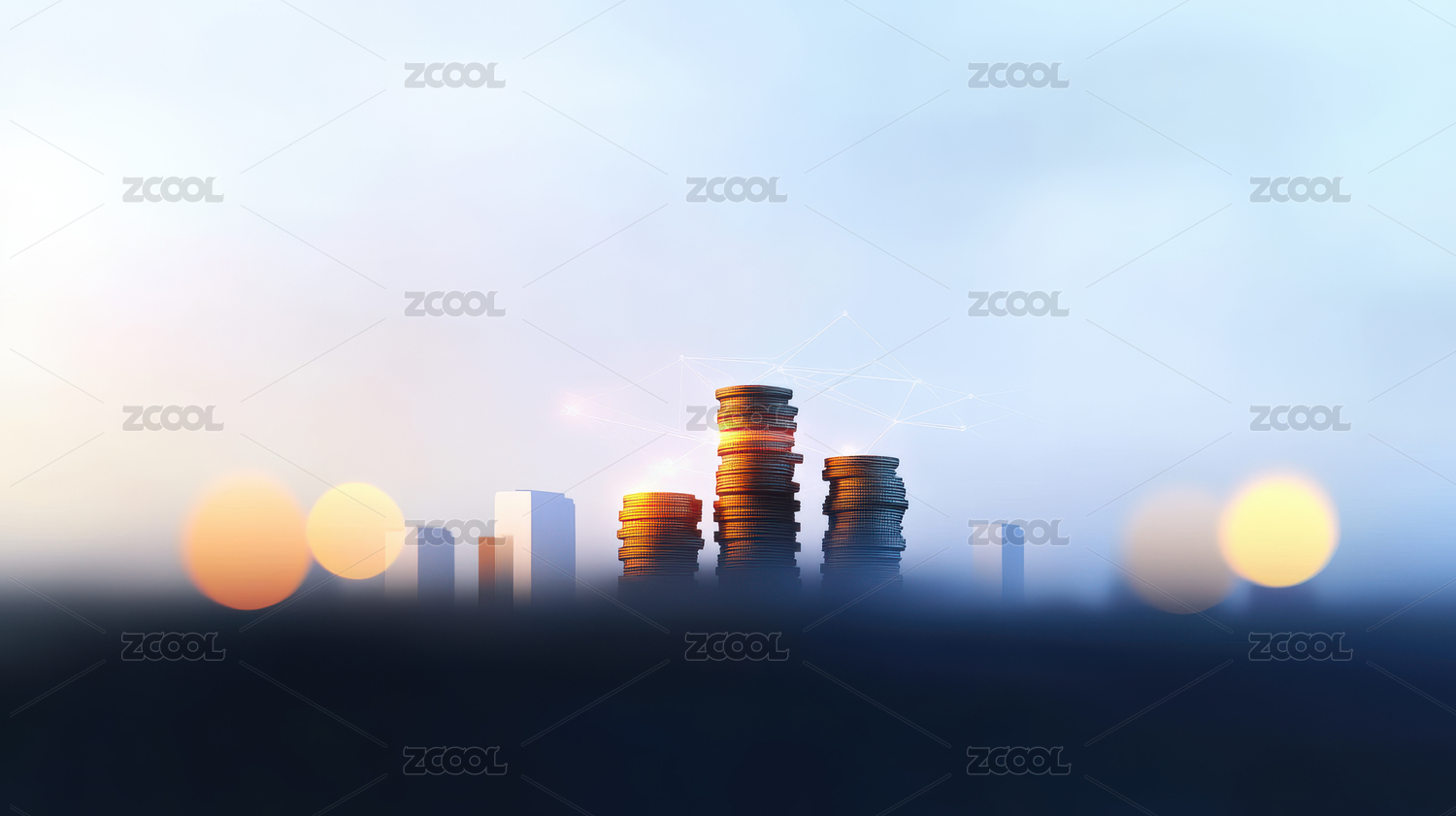 科技感十足的硬币堆叠场景