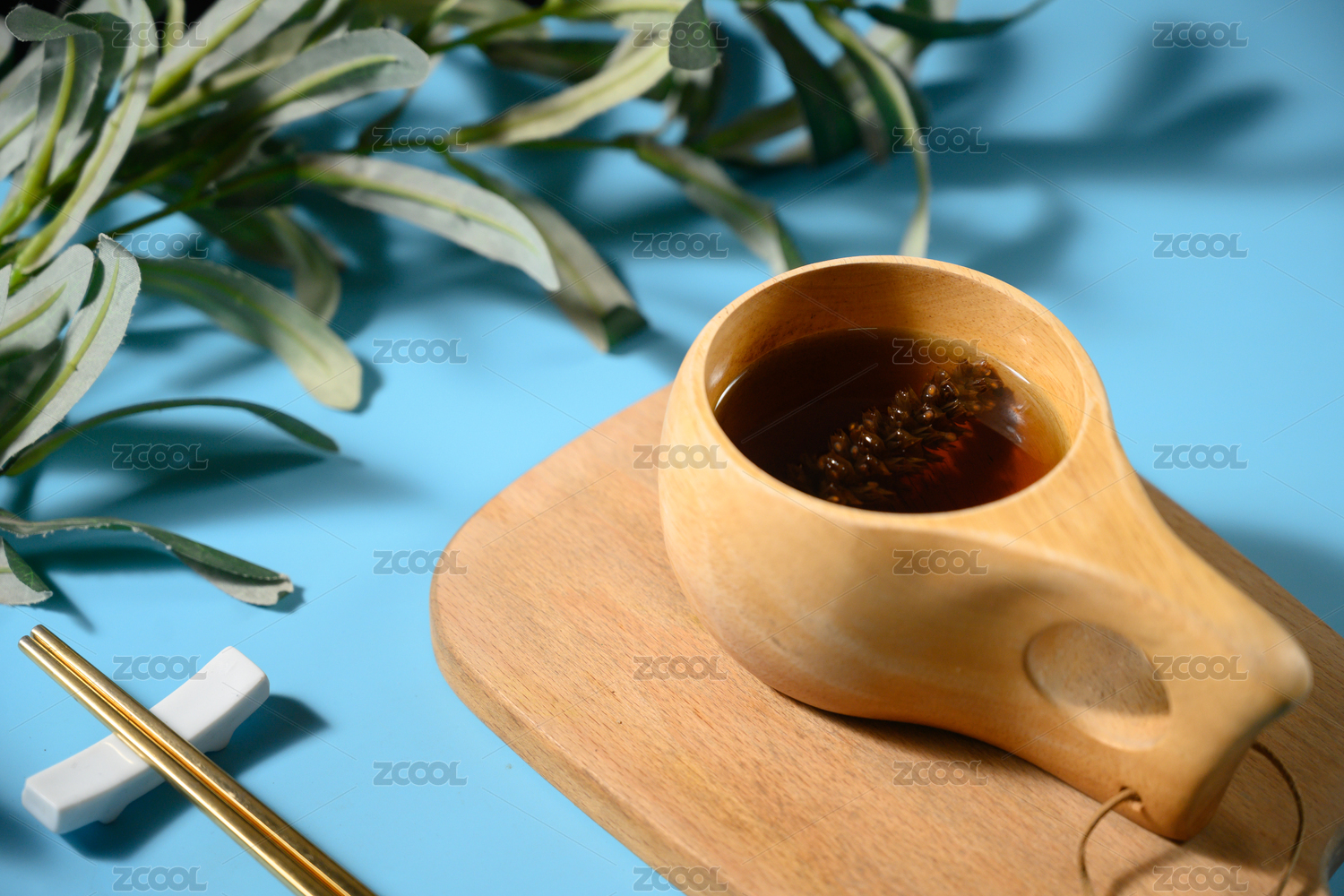 桌面上的杯子里的甘甜可口的绞股蓝茶