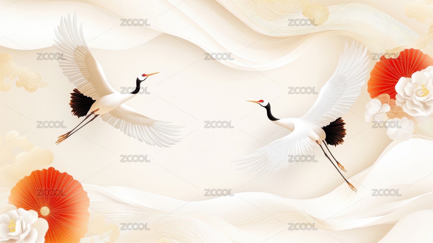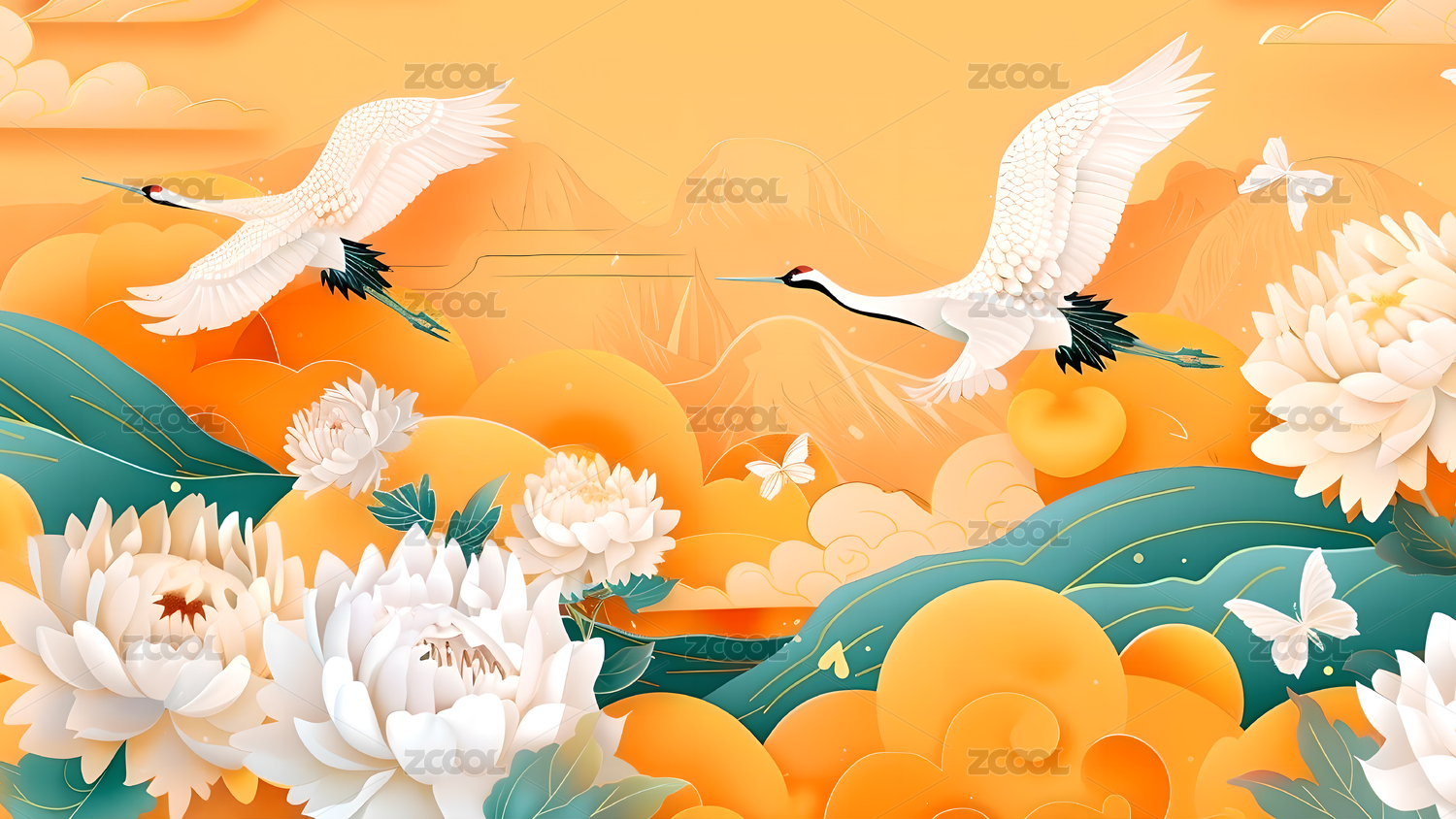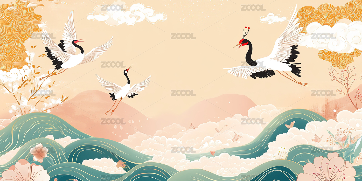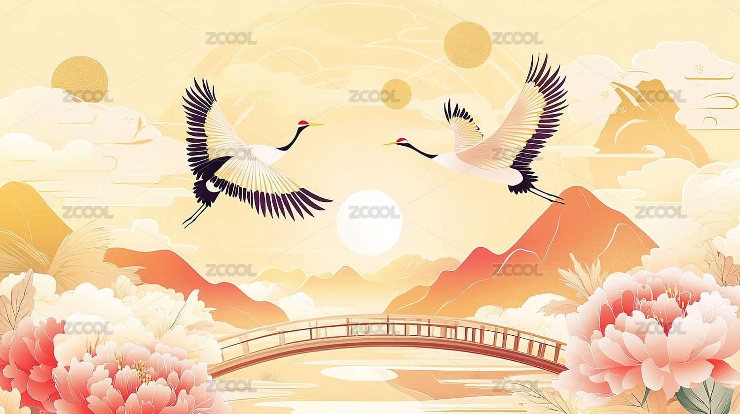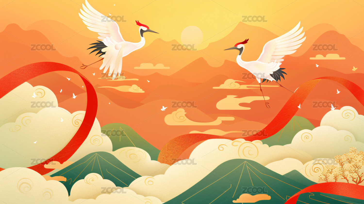 国潮风中国传统吉祥动物仙鹤飞翔展翅