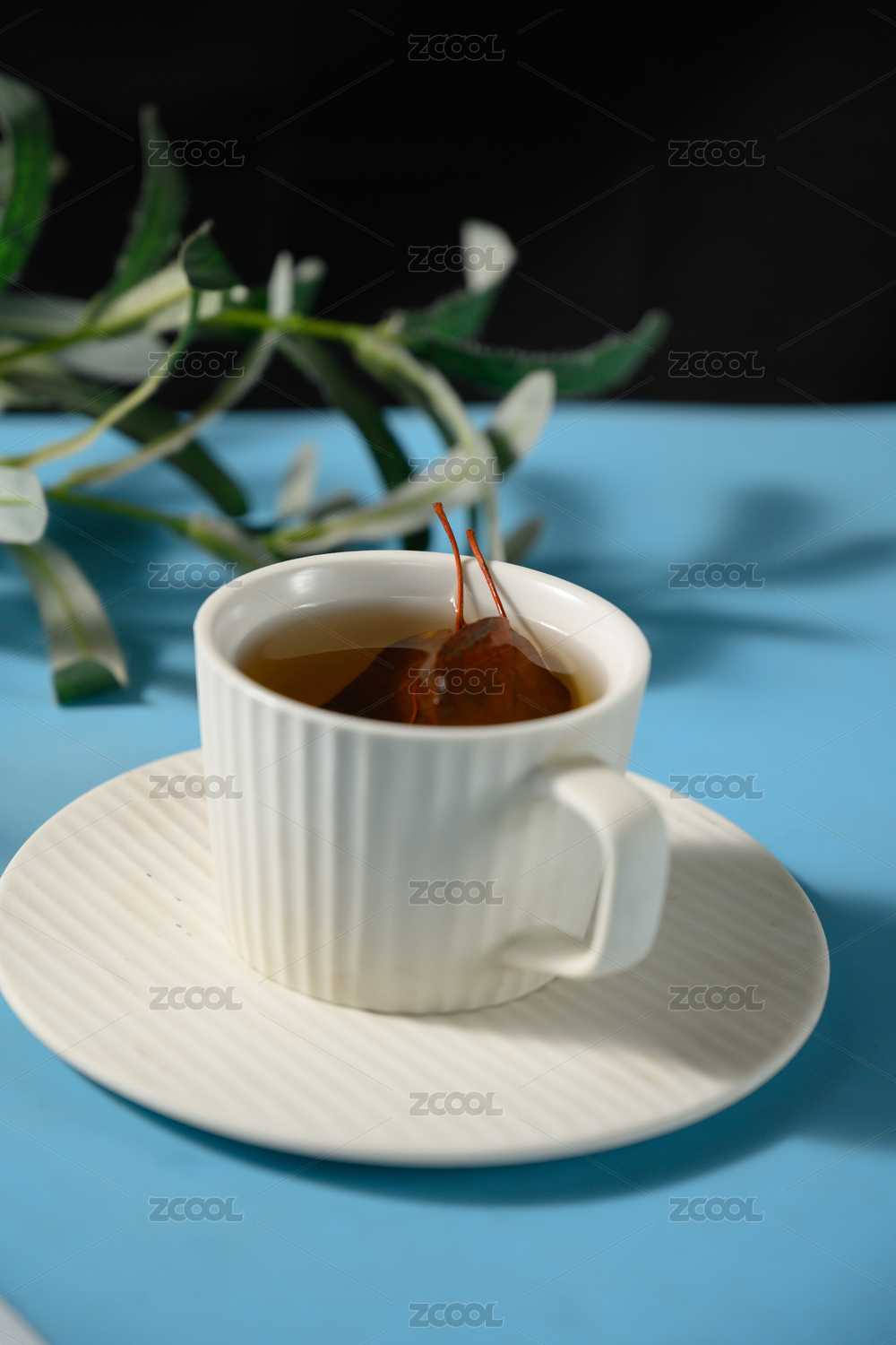 桌面上的杯子里的甘甜可口的胰岛果茶