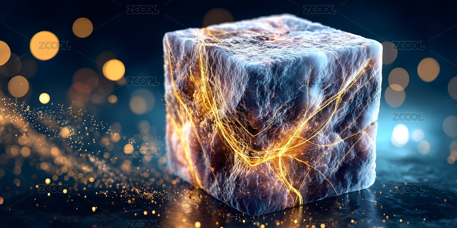 悬浮冰块与光斑的科技感