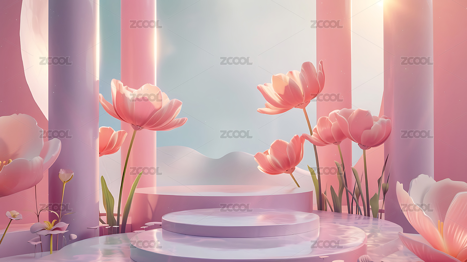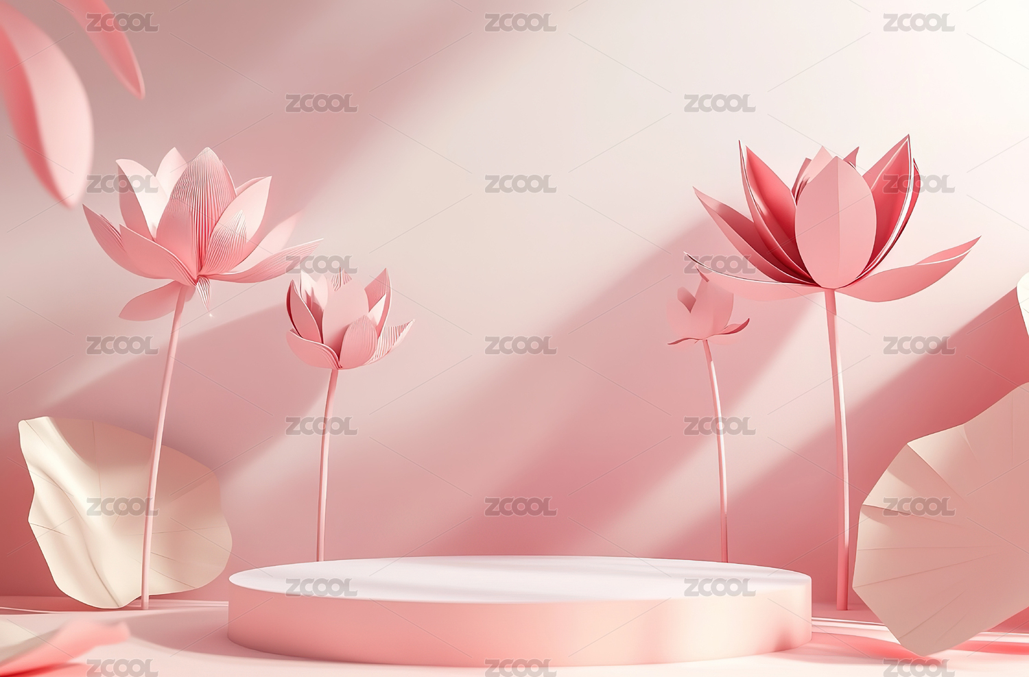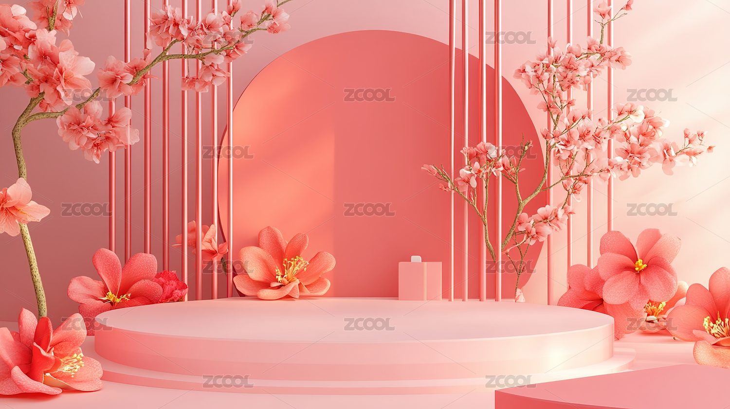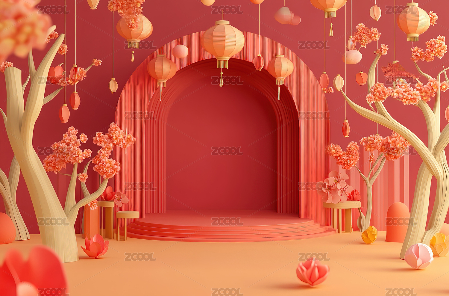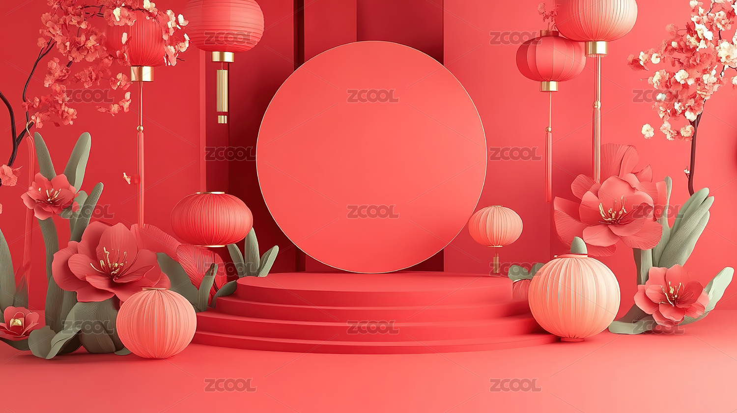 国风红色折纸花灯笼装饰的展台展厅3D背景