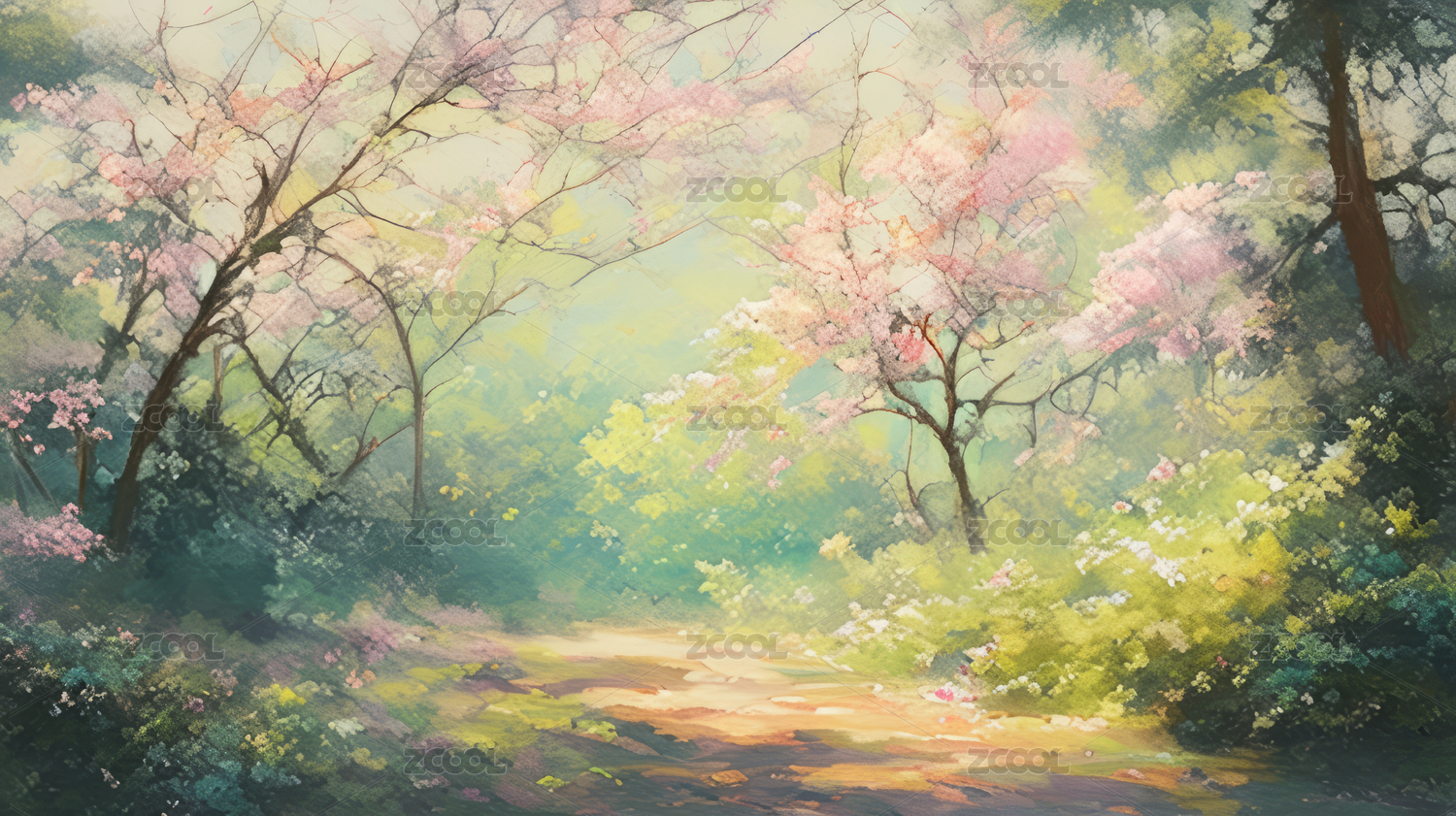 水彩春日花景图
