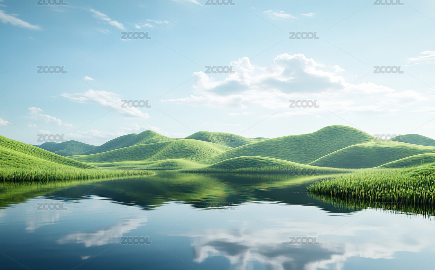 绿色的草地和倒影