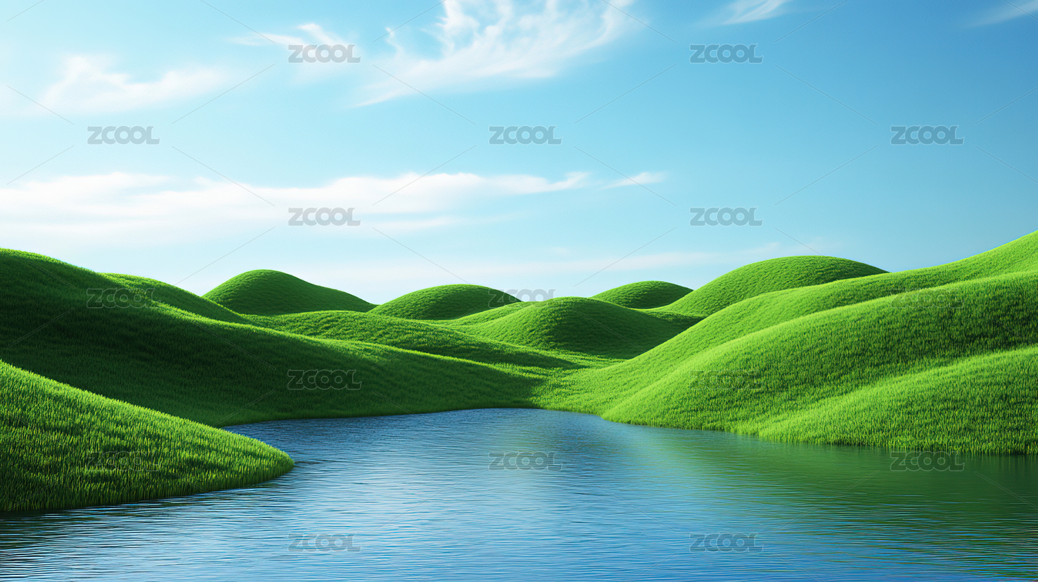 户外自然草地湖面清新背景