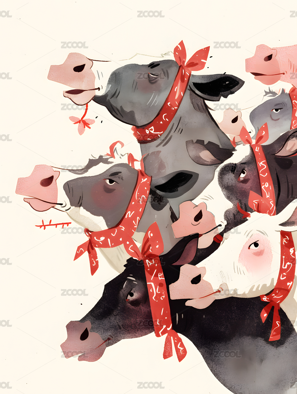 水墨,风格,扁平,平面,插画,色调,红色,灰色,笔触,艺术
