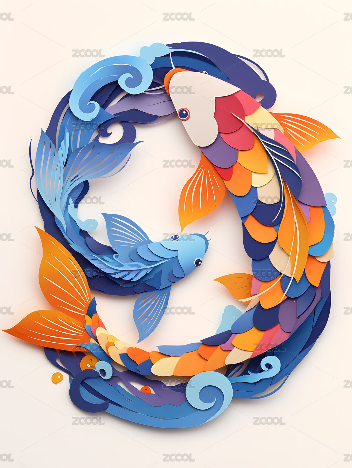 剪纸,风格,立体,3D,动物,形象,卡通,动画,拟人,纸雕