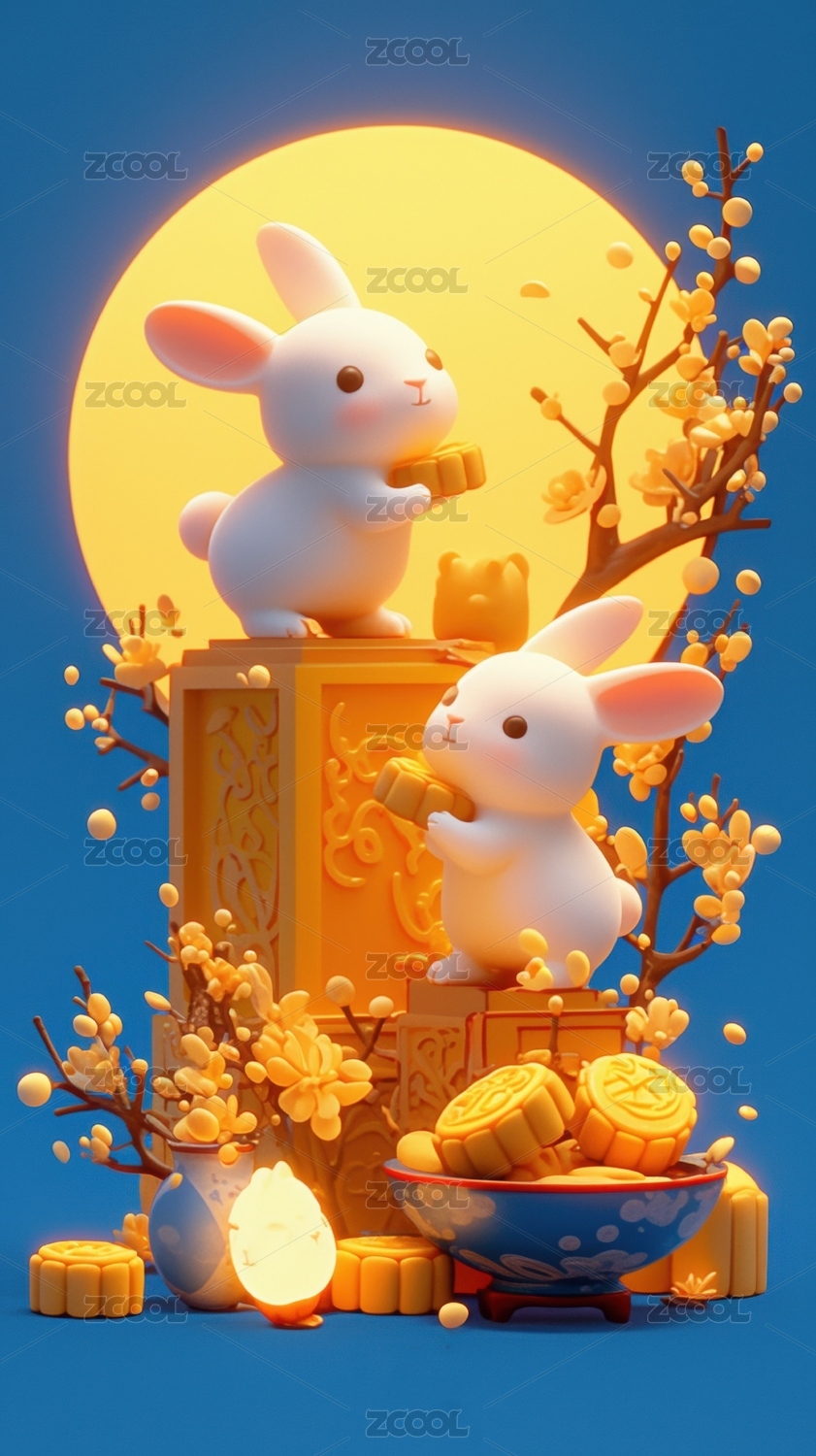 节日,喜庆,中秋,月饼,满月,月兔,桂花树