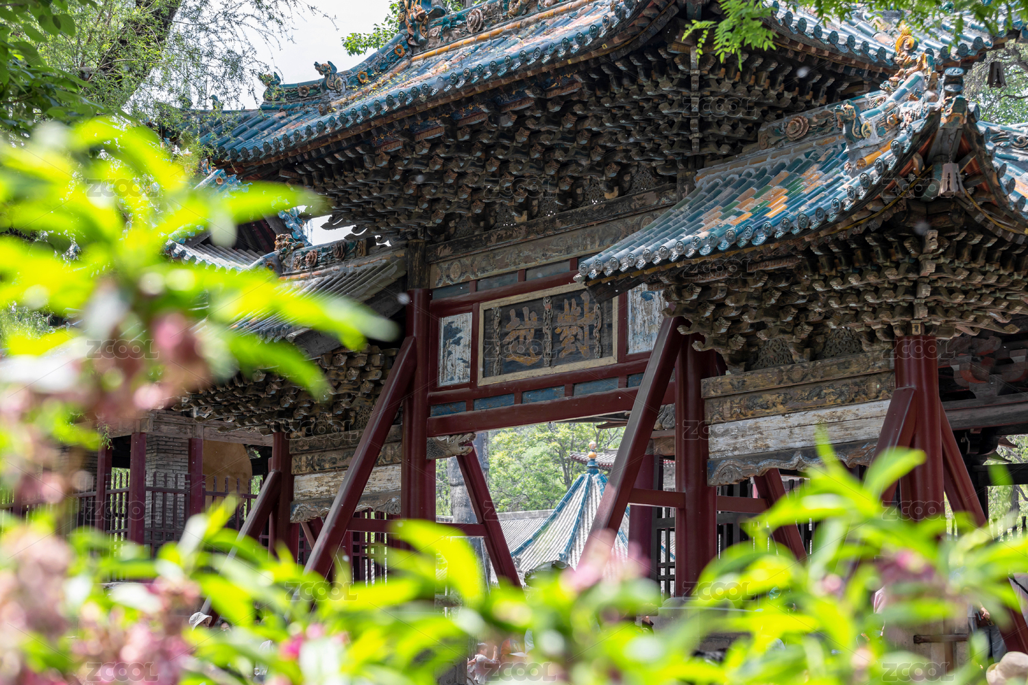 山西晋祠公园内中国古建筑