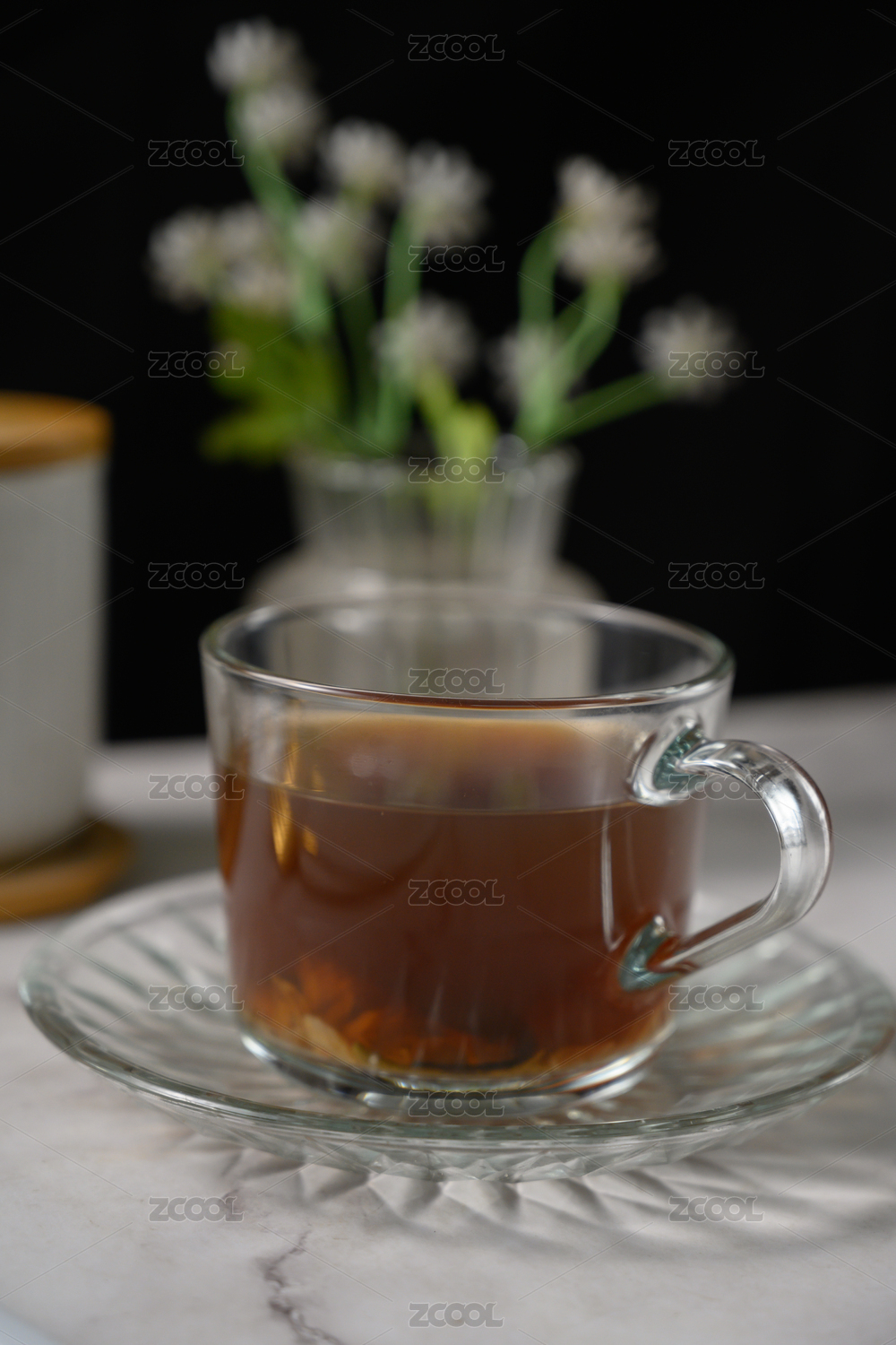桌面上的杯子里的甘甜可口的五花茶