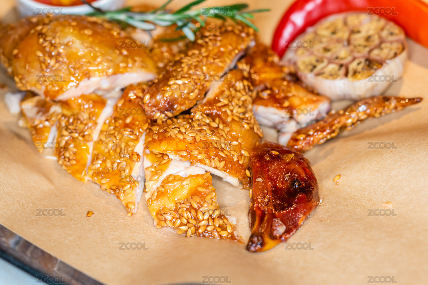 中国,无人,文化,辽宁,沈阳,室内,亚麻籽脆皮烧鸡,亚麻籽,脆皮烧鸡,脆皮