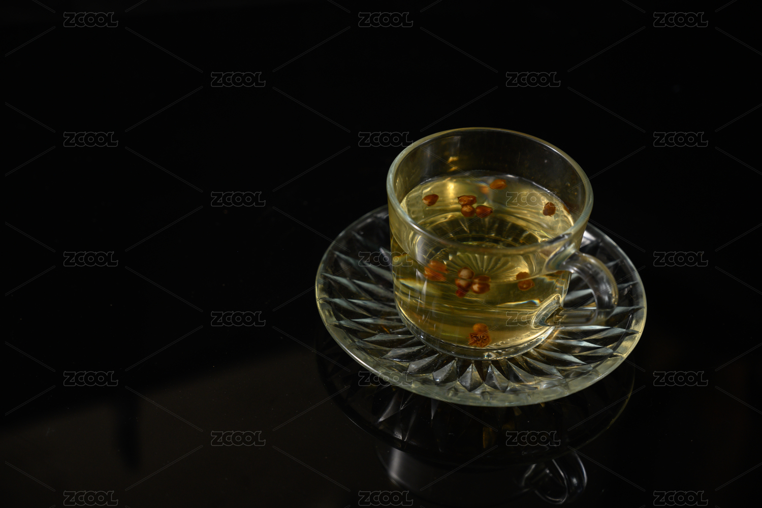 桌面上的杯子里的甘甜可口的槐花茶