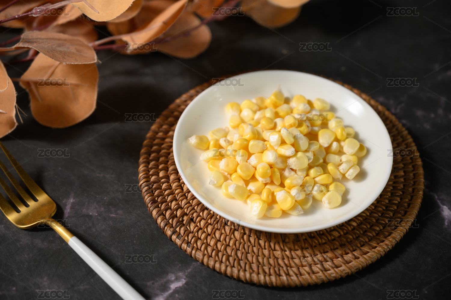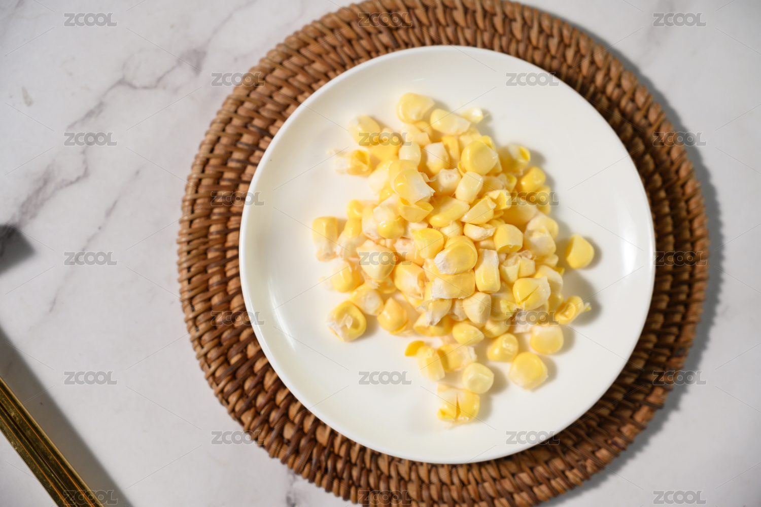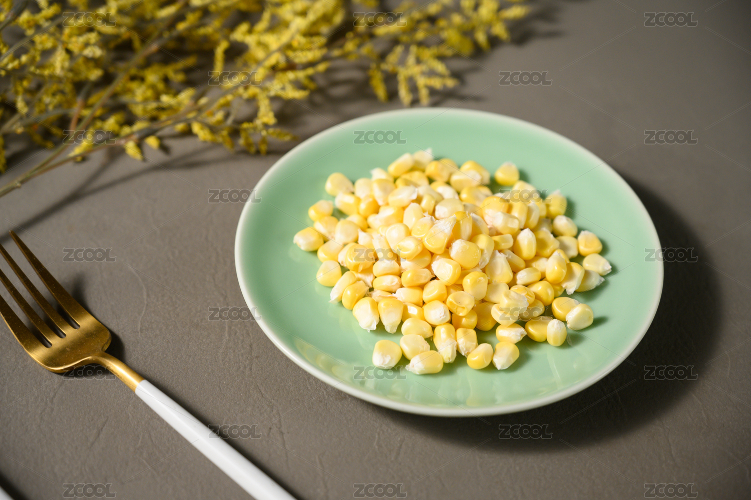 桌面上的盘子里的美味可口的玉米粒