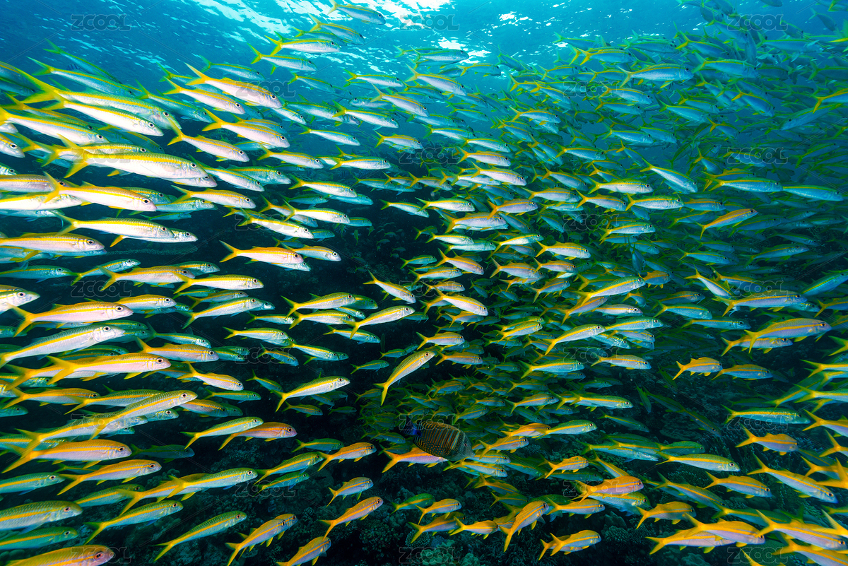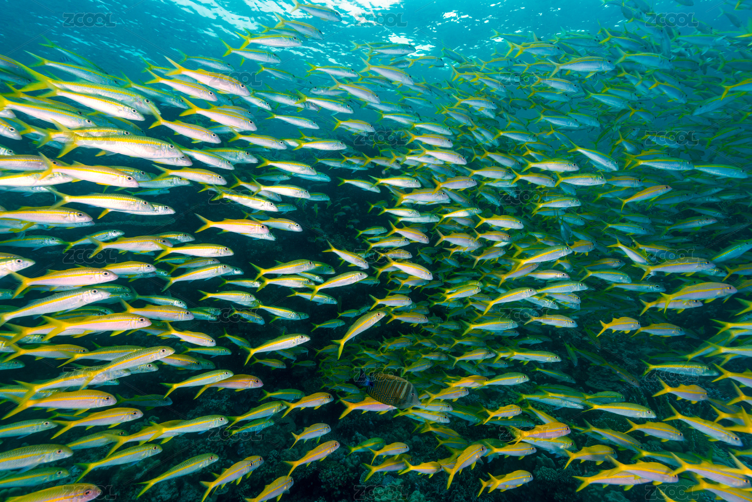 非洲,埃及,红海,船宿,潜水,带纹笛鲷,鱼群,珊瑚礁,珊瑚,鹿角珊瑚