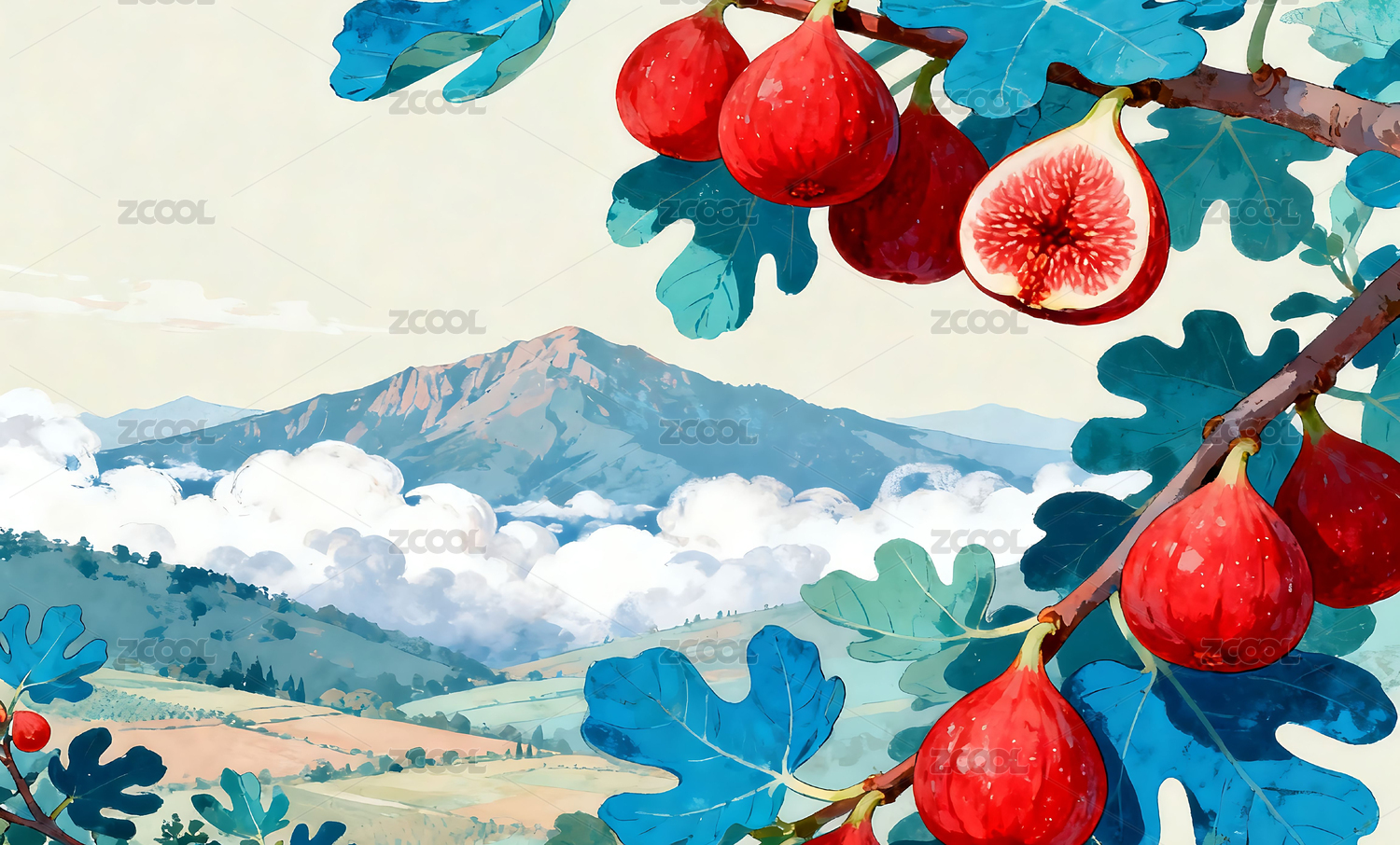 插画,有机食品,自然,食品,地形,水果,云,风景,背景,石榴