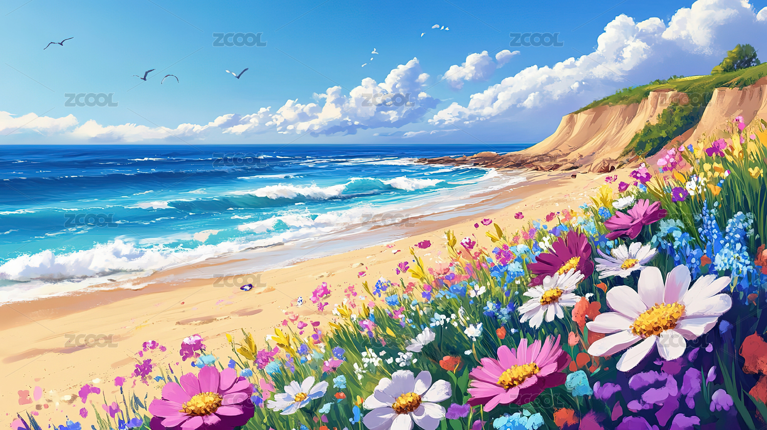 插画,绘画,风景,户外,自然,唯美,清新,大自然,油画,肌理