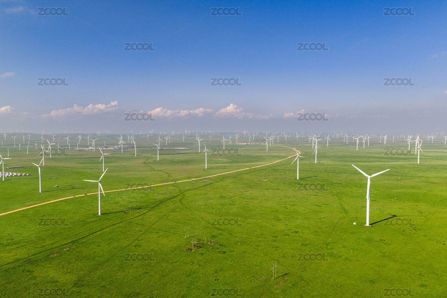 内蒙古锡林格勒广阔草原上的风力发电场航拍