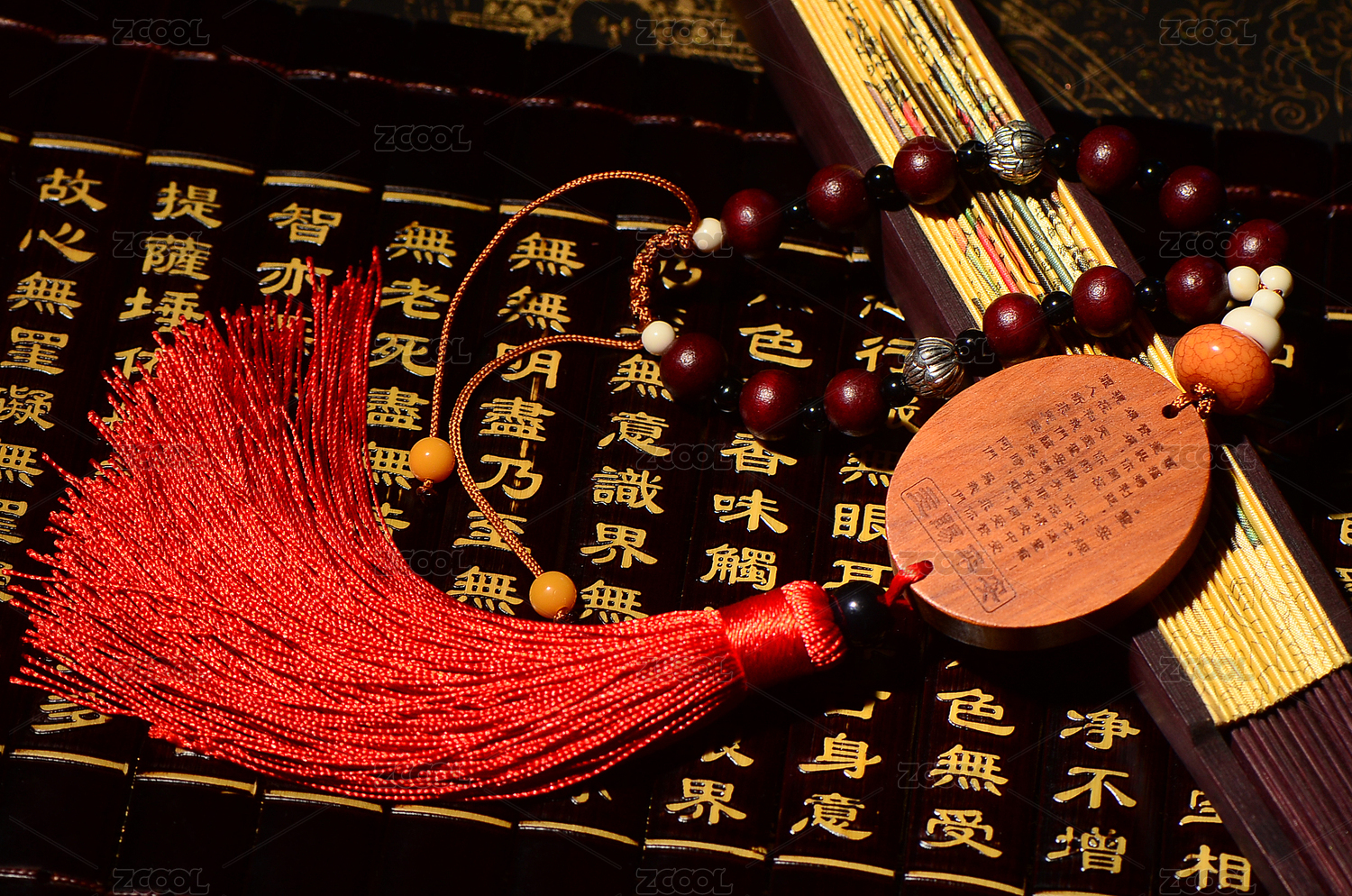 心经竹简背景上的阿弥陀佛像桃木汽车挂件