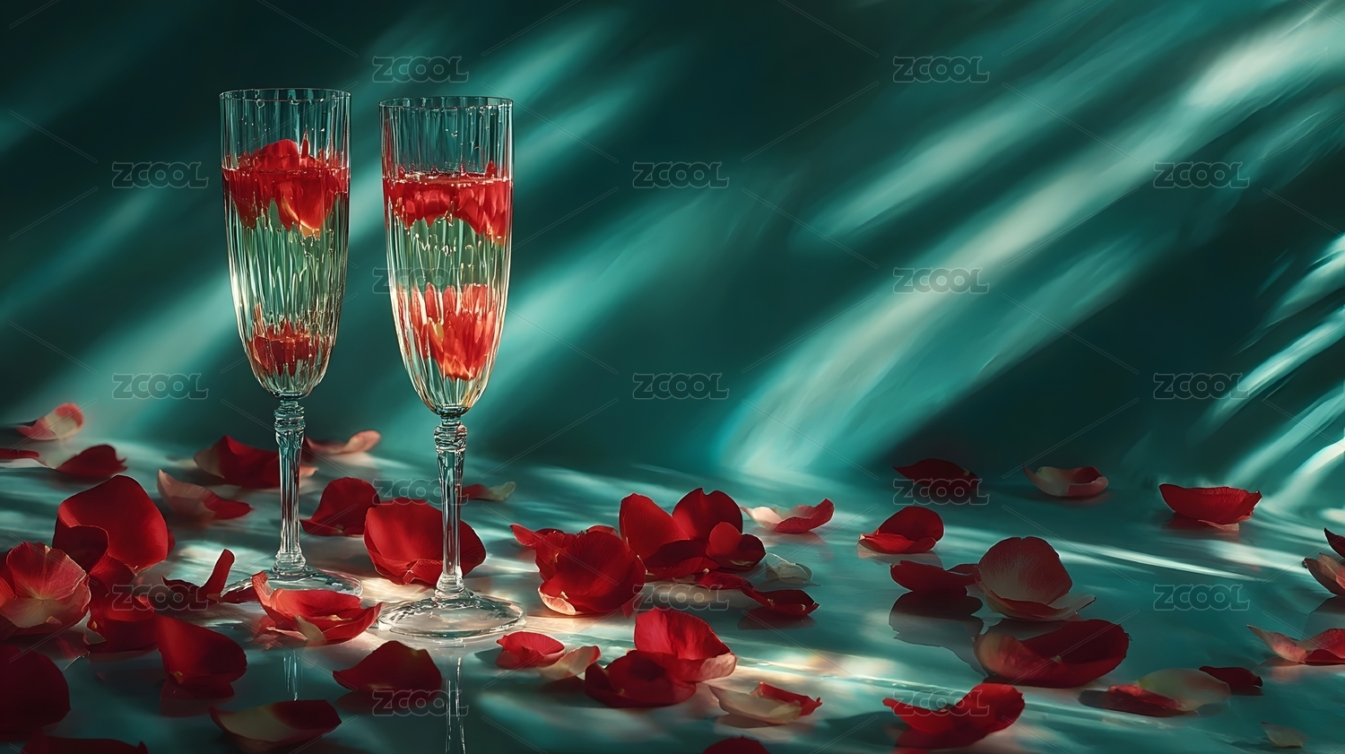 香槟与玫瑰花瓣