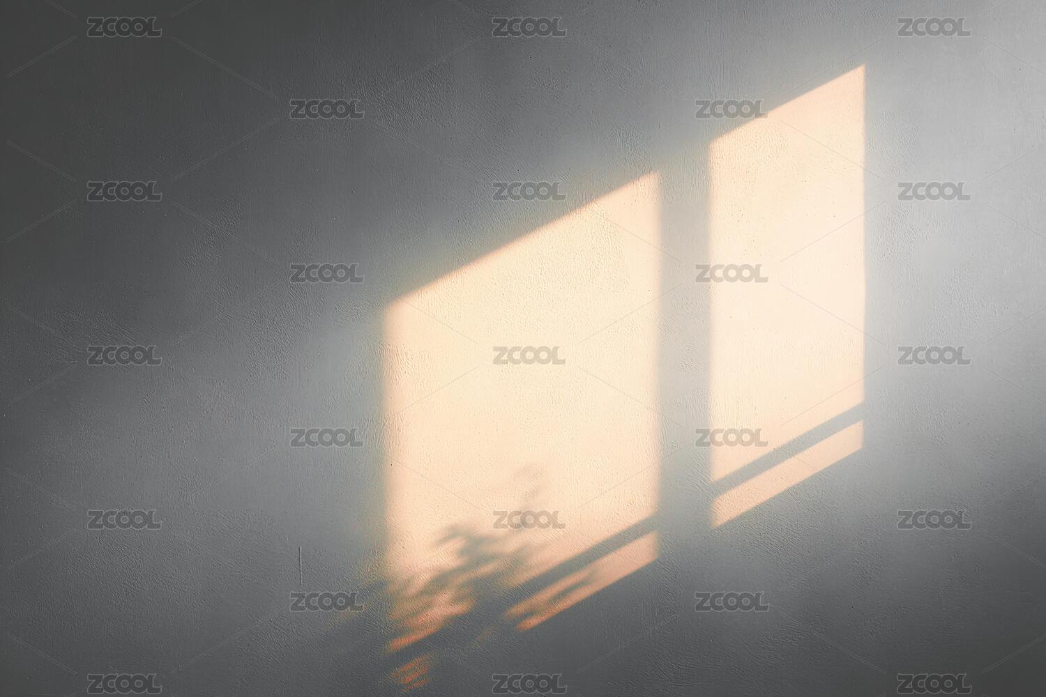 素雅灰色墙面上的阳光投影