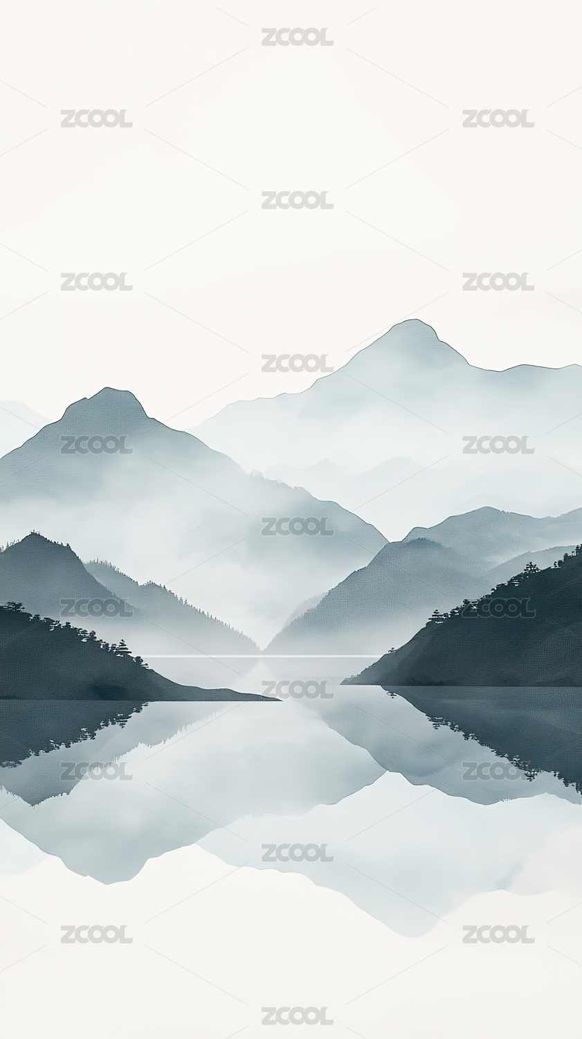 中国风水墨山水画,极简山水插画