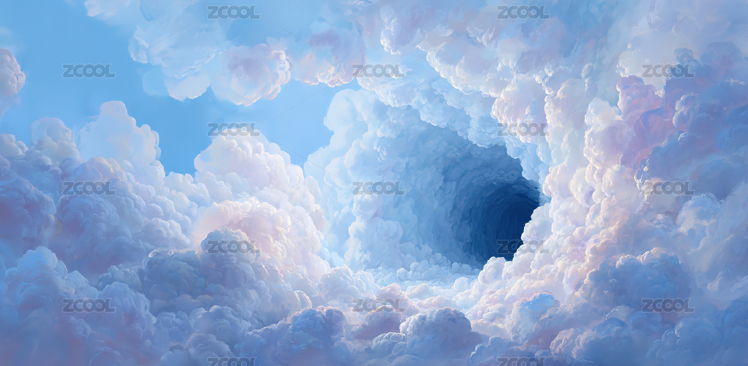 梦幻云层隧道紫色光芒闪耀