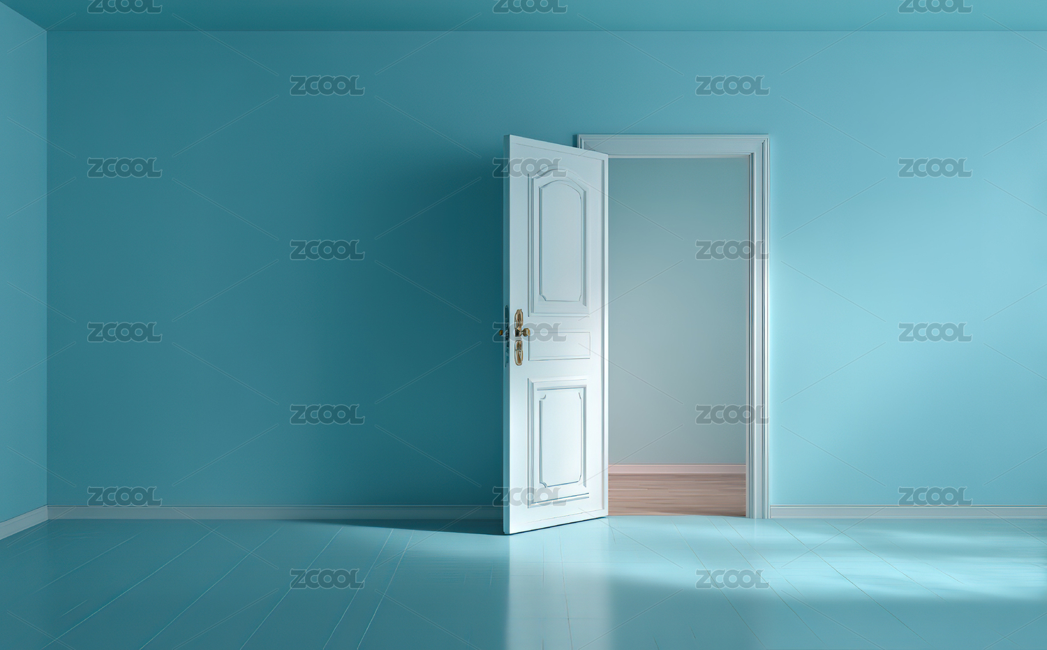 蓝色房间中的敞开白门