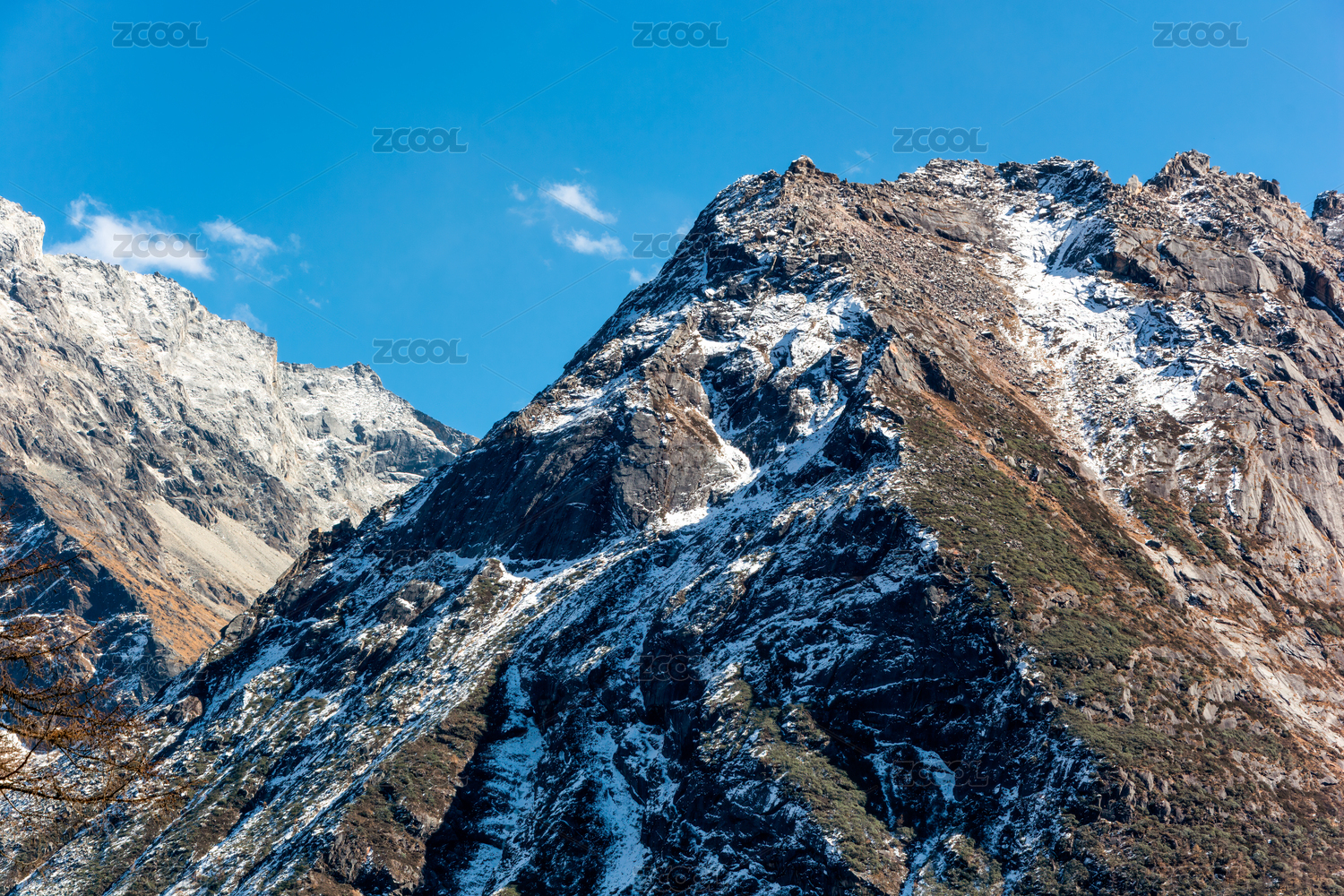 纯净蓝天下云南丽江玉龙雪山局部特写