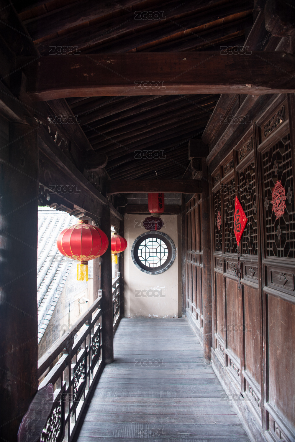 甘肃天水明清古代建筑胡氏民居走廊挂着灯笼