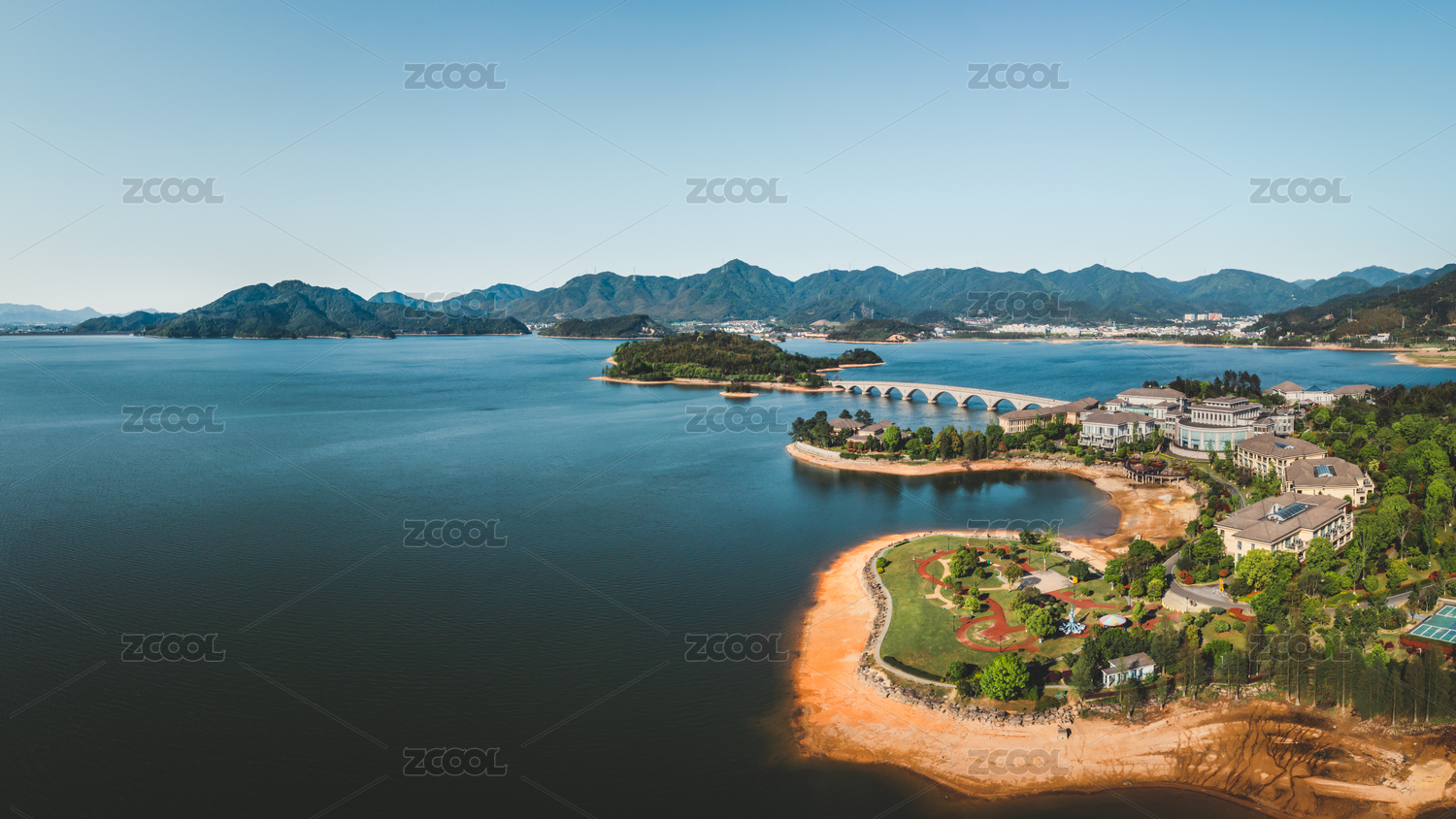 户外,航拍,浙江杭州,千岛湖风光,旅游度假区,自然风光,山水风景,湖泊水景,绿水青山,岛屿密布