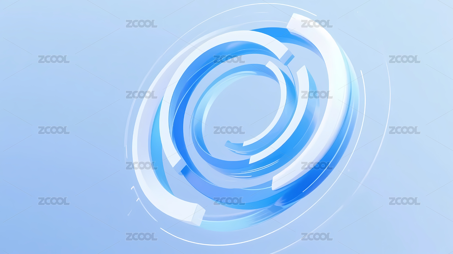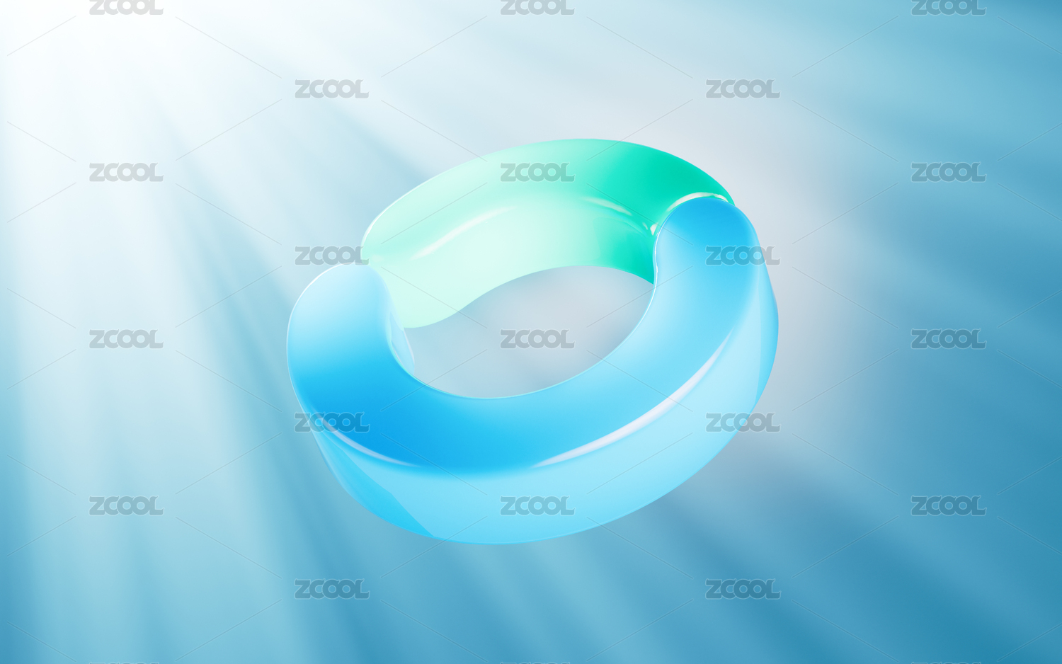 清新透明蓝底抽象浅蓝色圆环3D立体插画