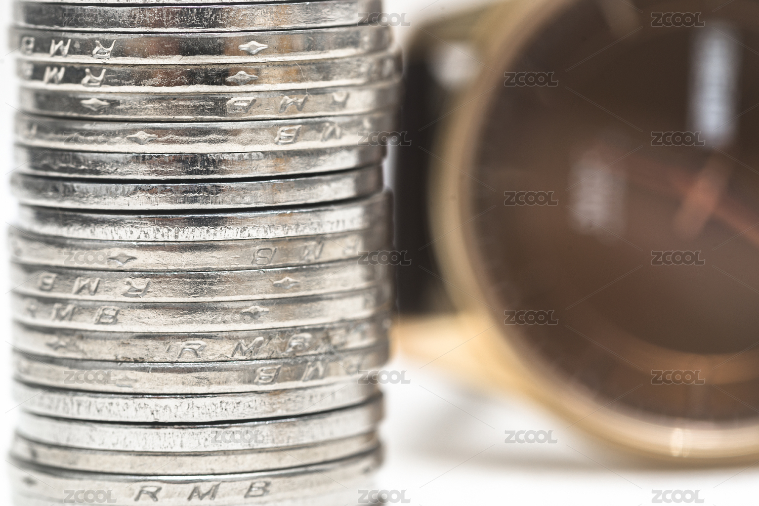 硬币与虚化的手表,商务金融,效率概念创意图