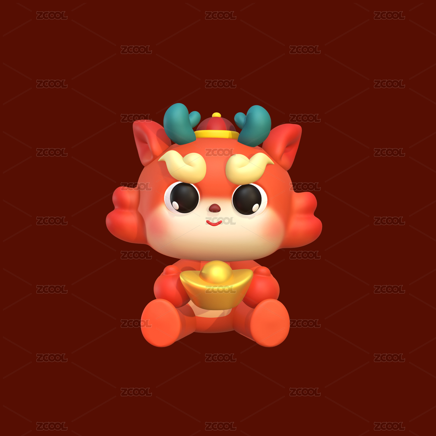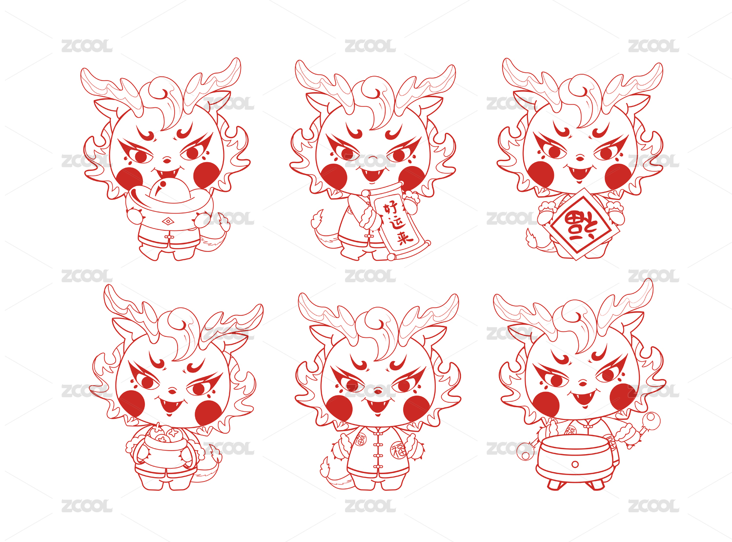 新年龙年可爱卡通龙剪纸风格中国龙吉祥物