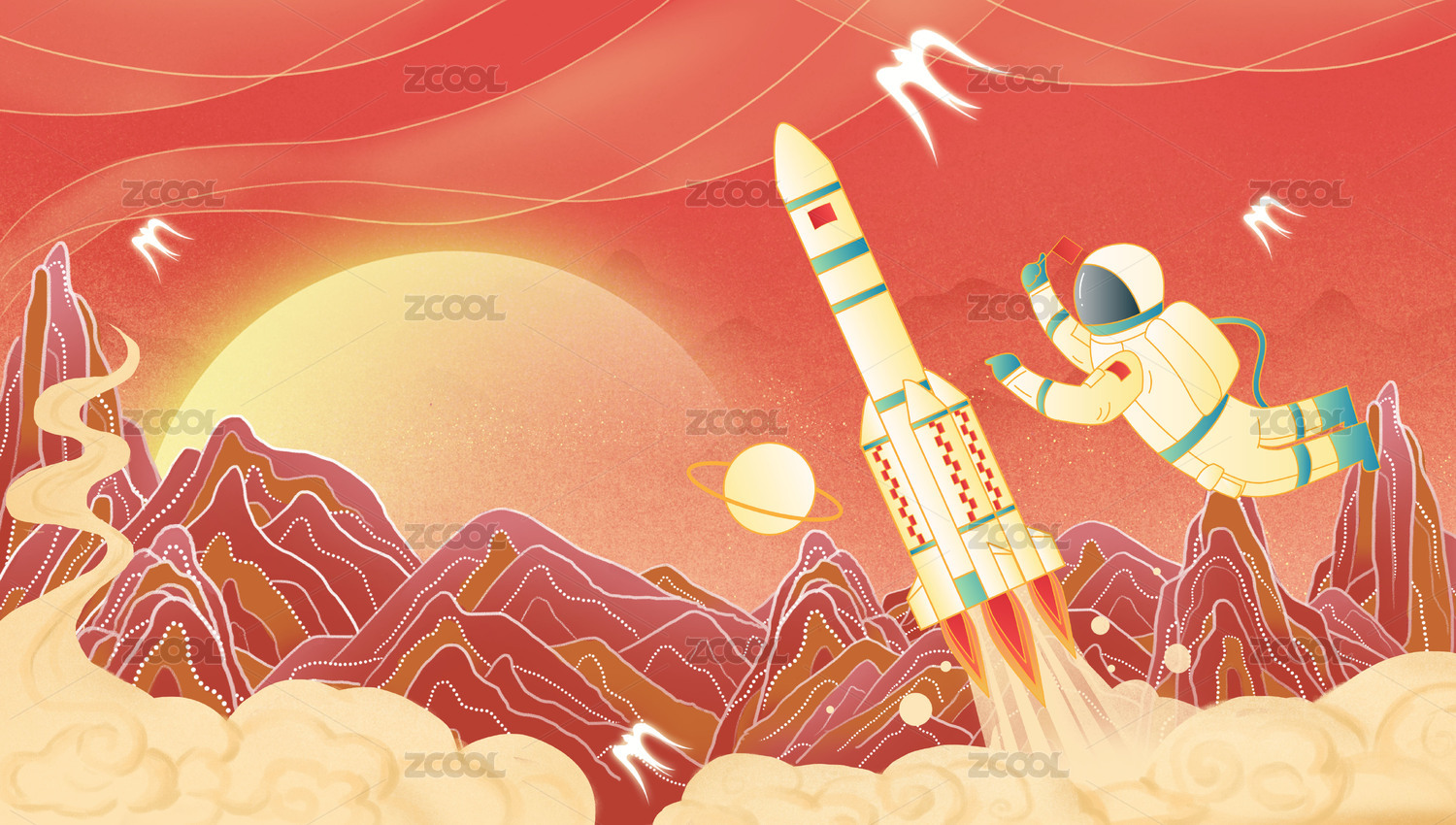 中国风航天日载人火箭发射宇航员登月