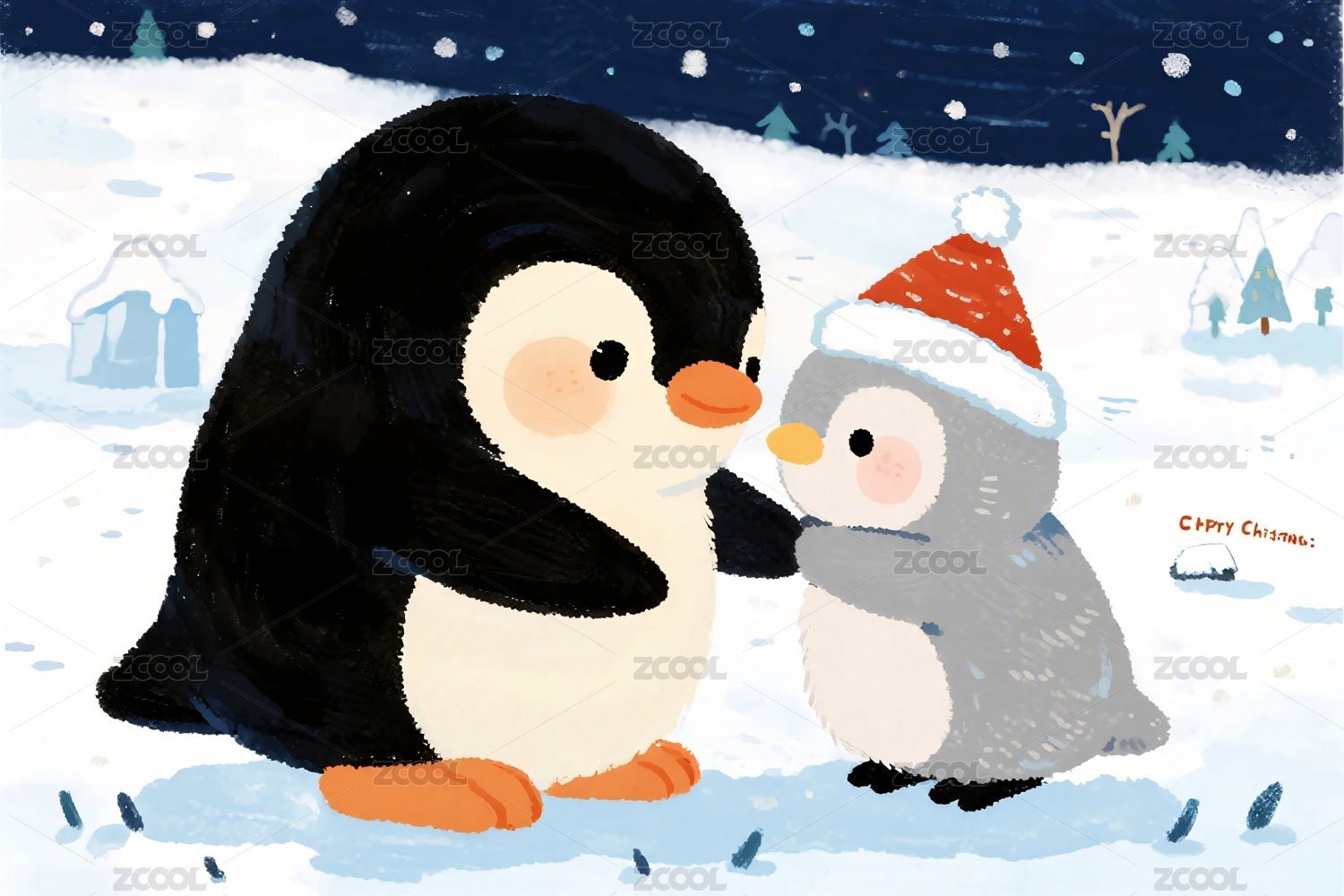 DXCZ202402,圣诞节,企鹅,圣诞,帽子,红色,雪花,图案,雪地,友好