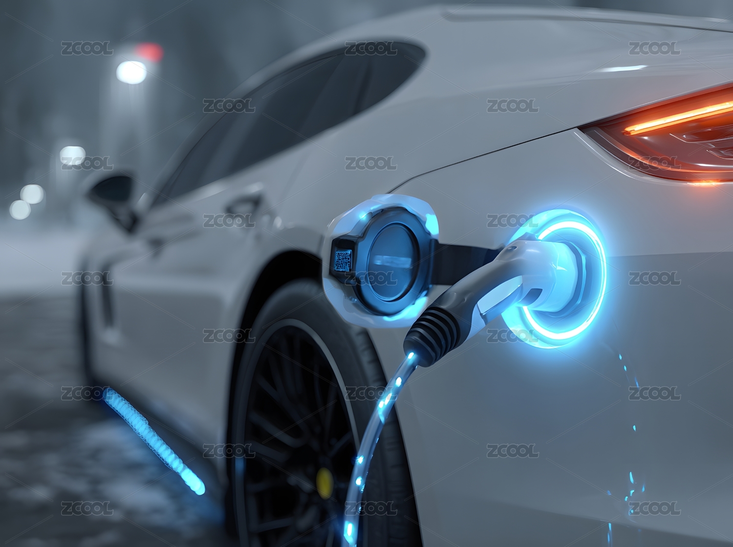电动汽车充电 蓝色光效夜景