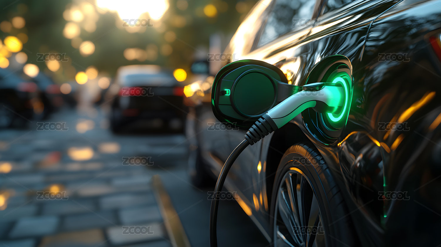电动汽车充电场景新能源未来科技概念插图