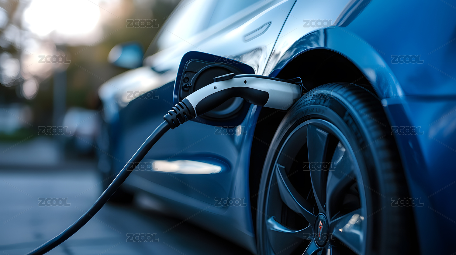 充电中的新能源汽车局部特写
