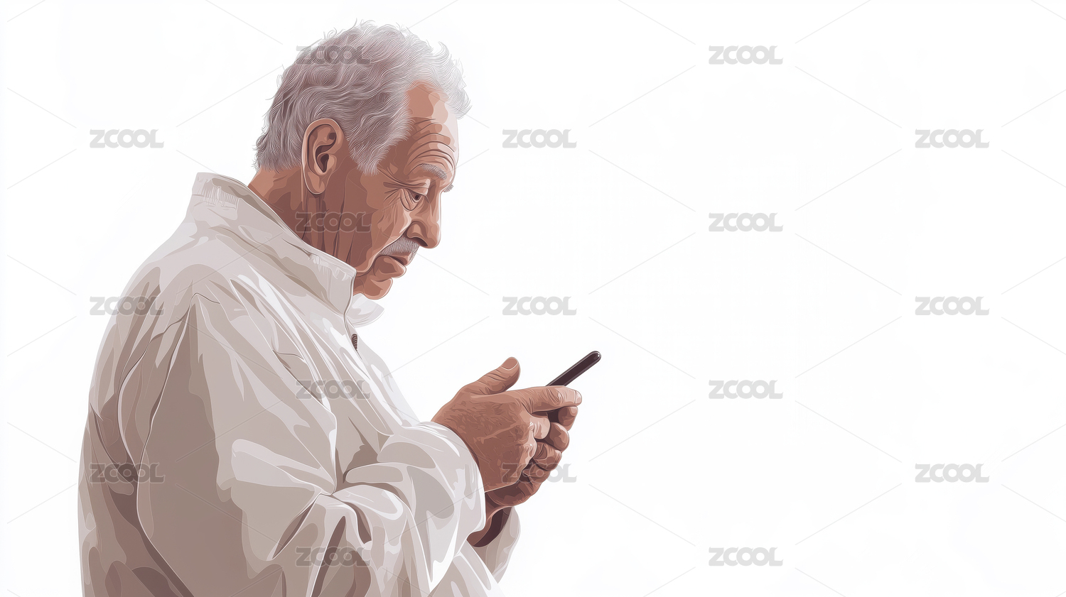 看着手机的白发老年人