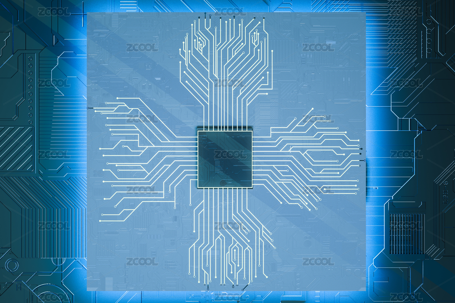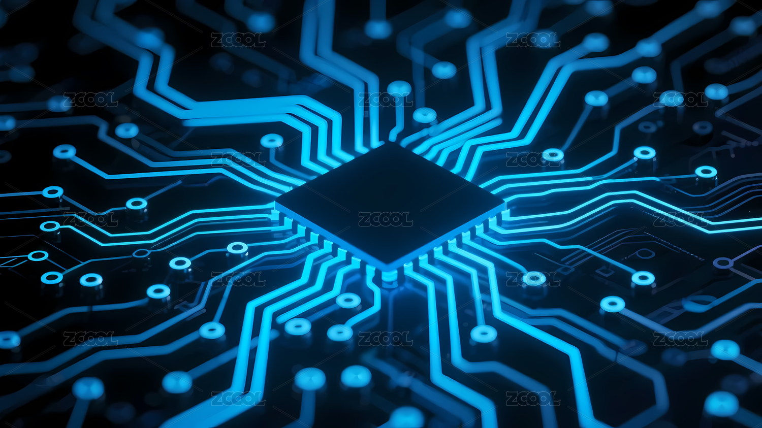 芯片金融科技赛博朋克人工智能三维渲染电路