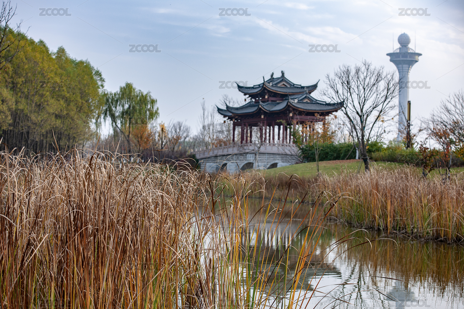 长治市漳泽湖湿地公园安澜桥秋日风光